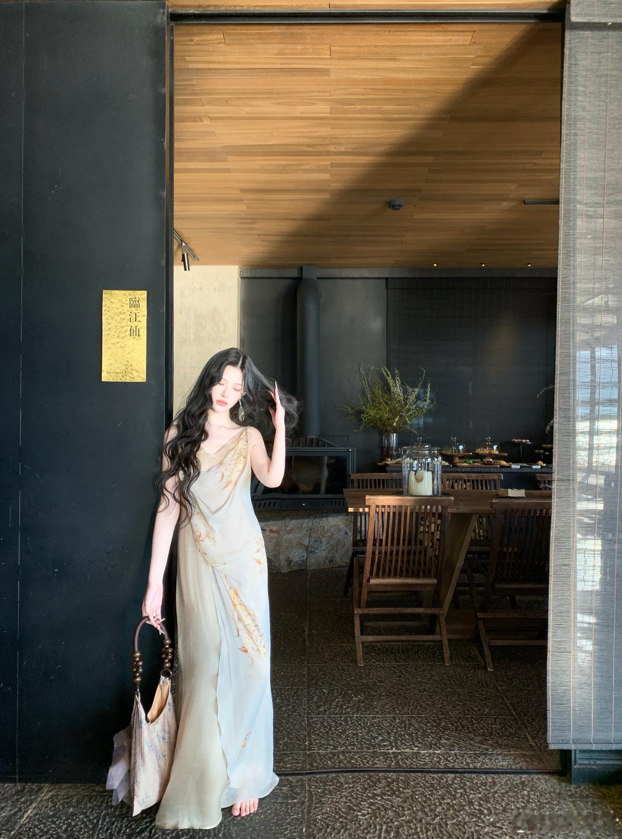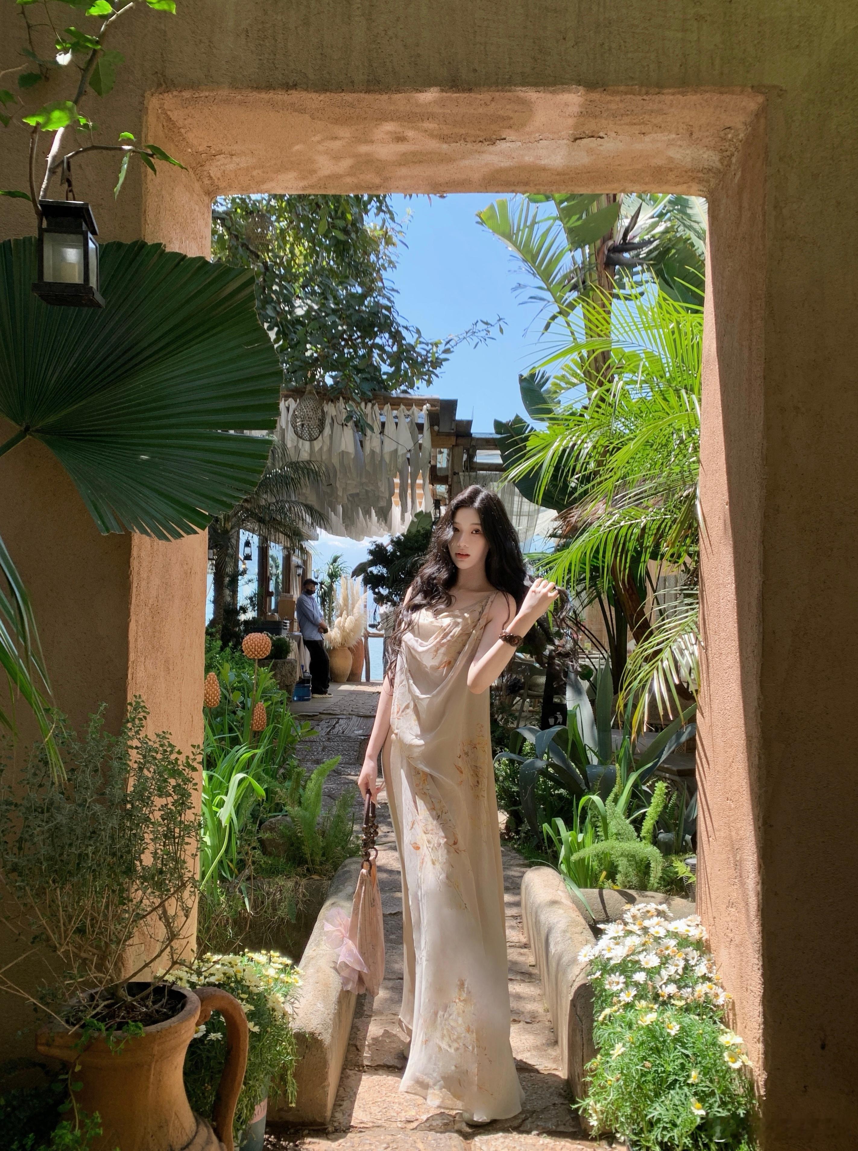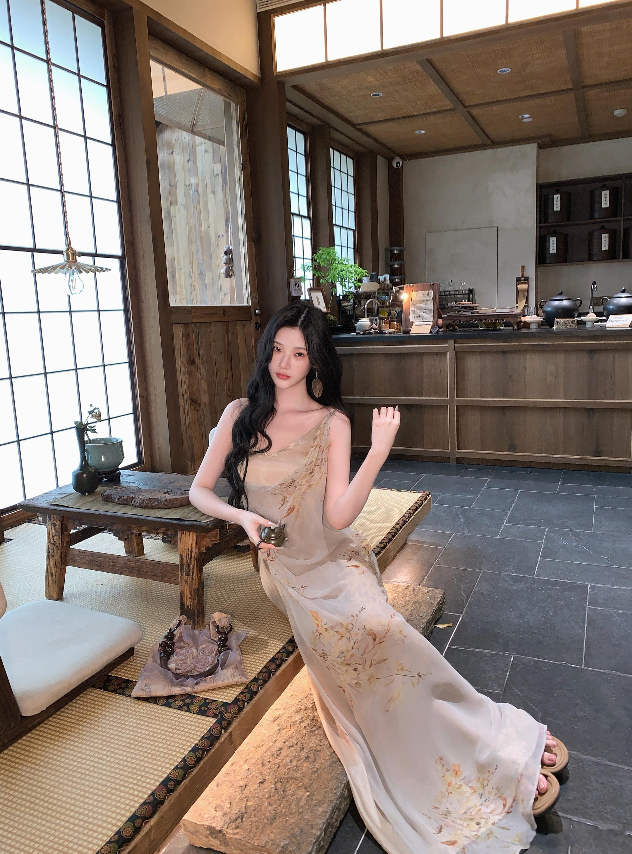 𝑴𝑶𝑺𝑺 𝟒.𝟐𝟖/𝟐𝟎:𝟎𝟎𝒑𝒎【浅川序】🐚🐚铜氨丝桑蚕丝乔其花拼接吊带裙甄选高支数真丝混纺面料,自带珍珠般的柔润光泽,垂坠感拉满,上身后如第二层肌肤般轻盈透气,完美贴合身形却不紧绷,兼具真丝的亲肤与混纺的抗皱性。V 领+荡领双层设计,修饰肩颈线条,弱化副乳,打造天鹅颈视觉果,细肩带可调节,适配不同身形新中式