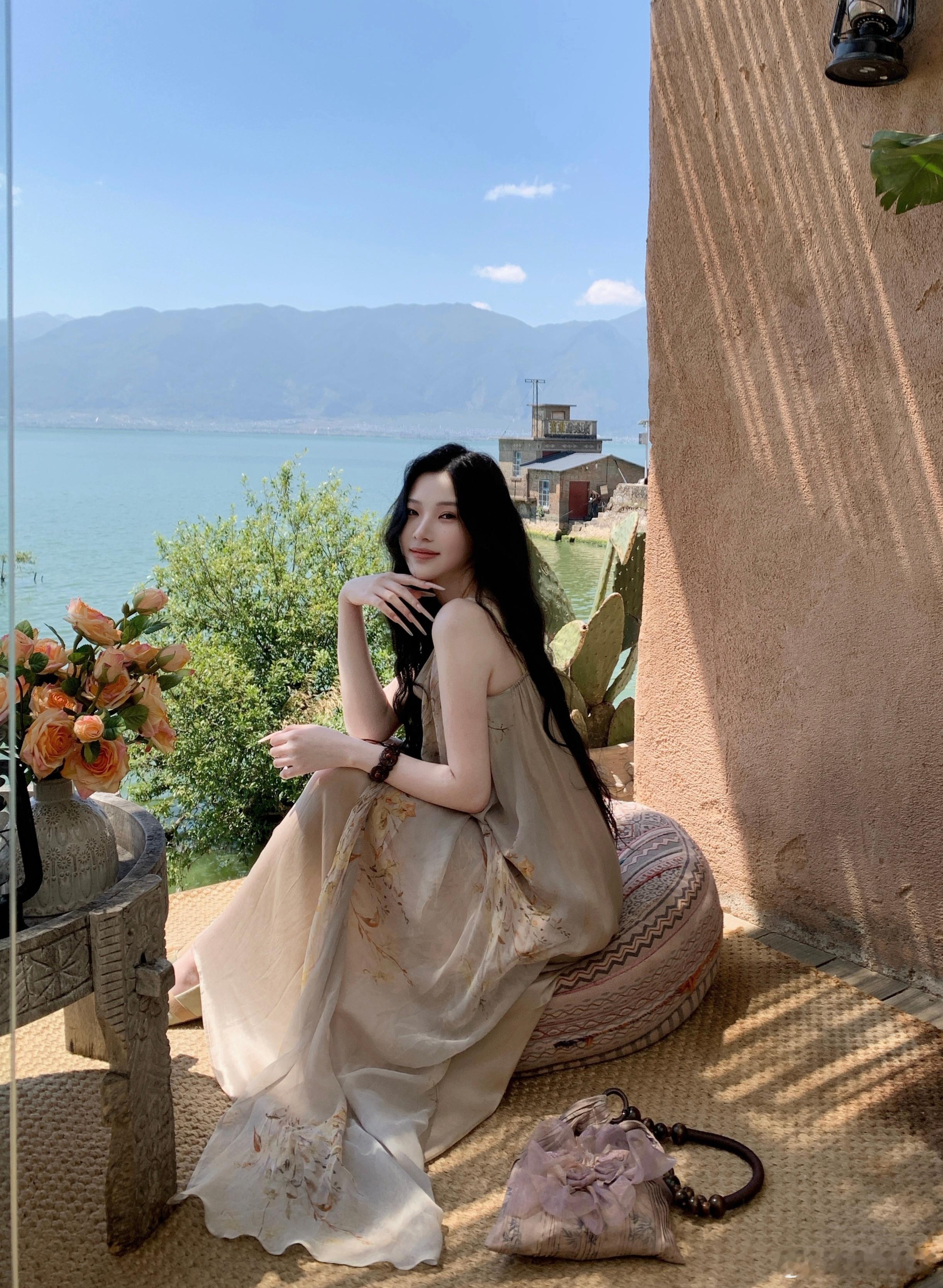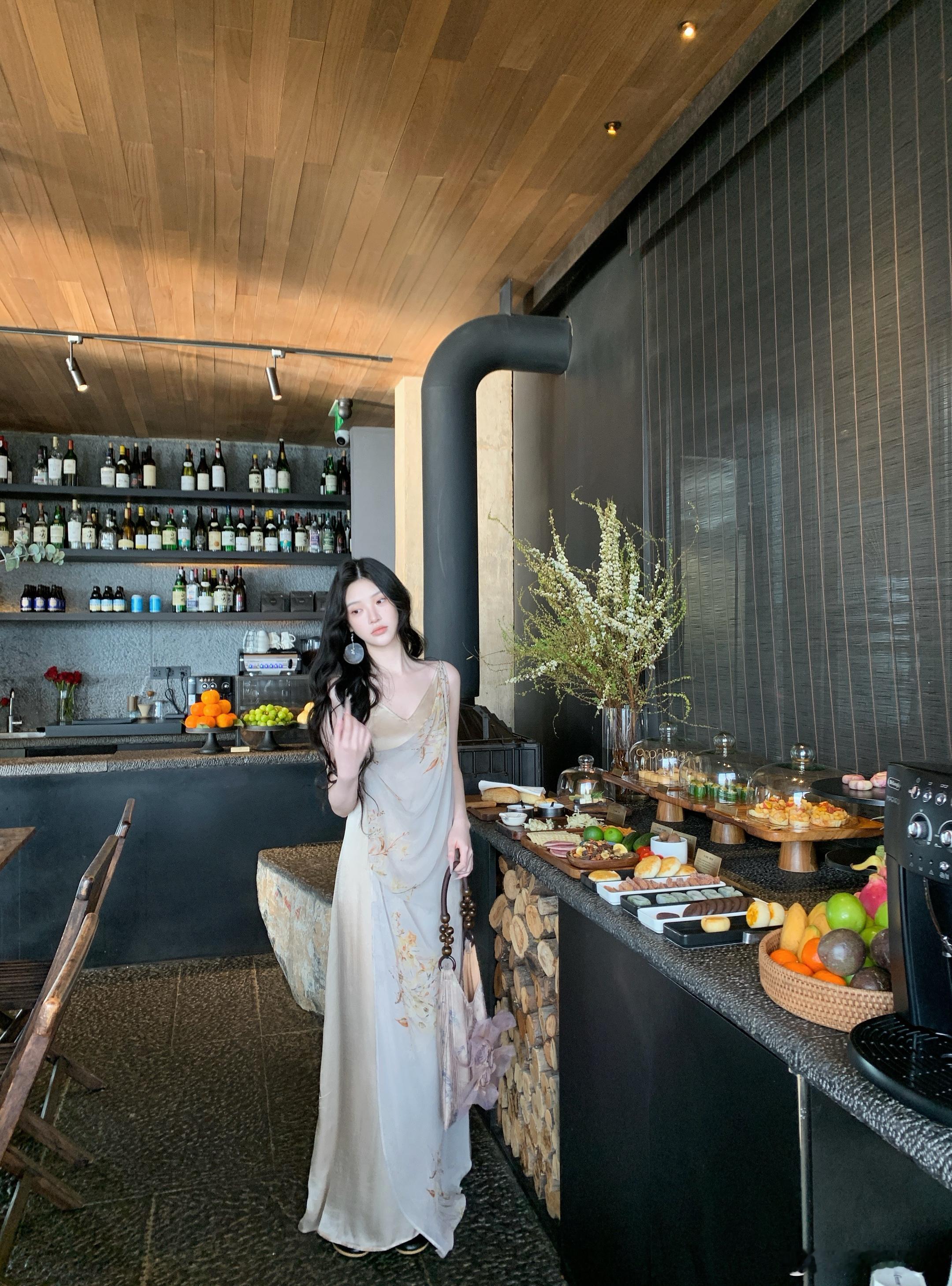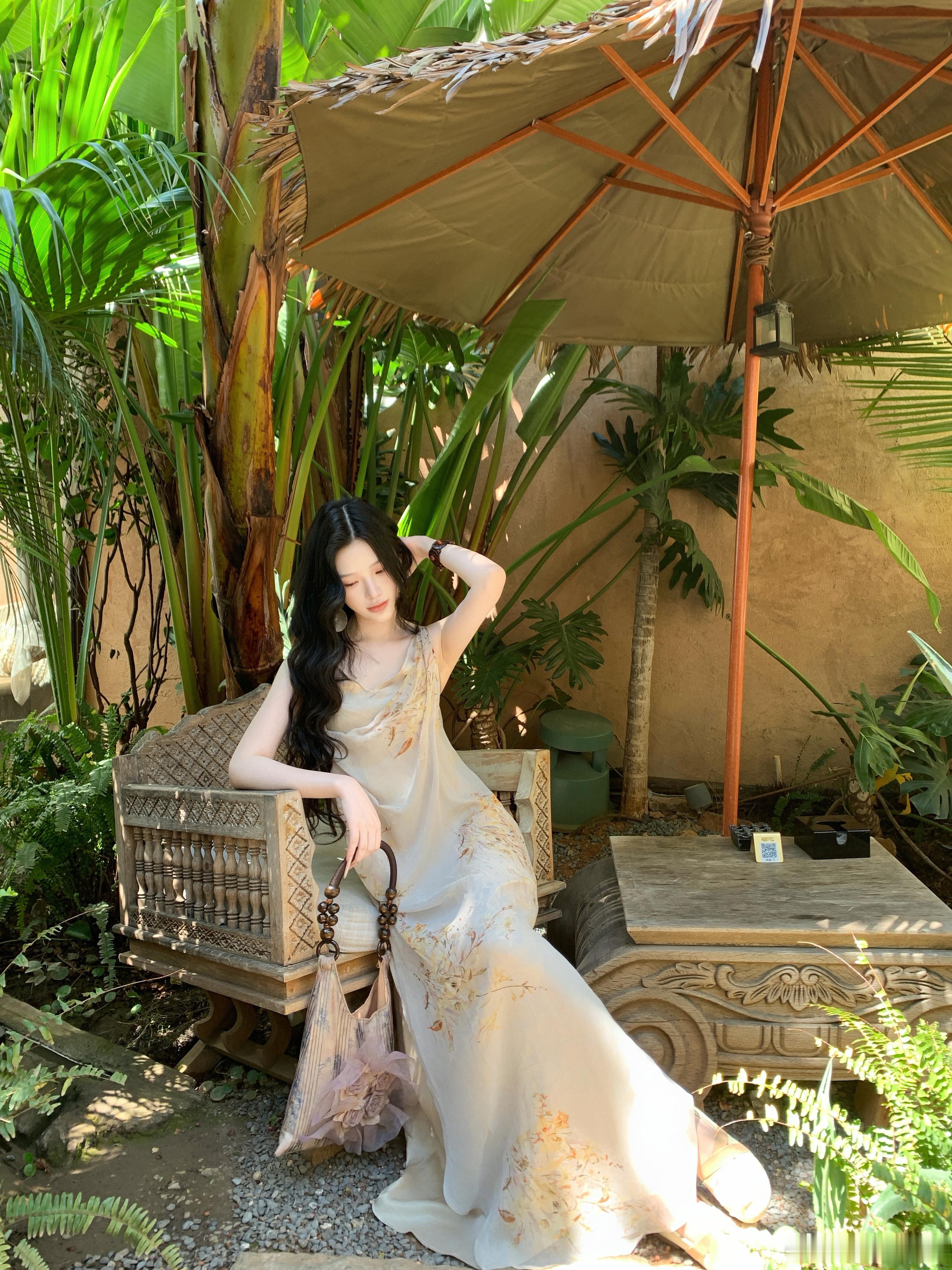 𝑴𝑶𝑺𝑺 𝟒.𝟐𝟖/𝟐𝟎:𝟎𝟎𝒑𝒎【浅川序】🐚🐚铜氨丝桑蚕丝乔其花拼接吊带裙甄选高支数真丝混纺面料,自带珍珠般的柔润光泽,垂坠感拉满,上身后如第二层肌肤般轻盈透气,完美贴合身形却不紧绷,兼具真丝的亲肤与混纺的抗皱性。V 领+荡领双层设计,修饰肩颈线条,弱化副乳,打造天鹅颈视觉果,细肩带可调节,适配不同身形新中式