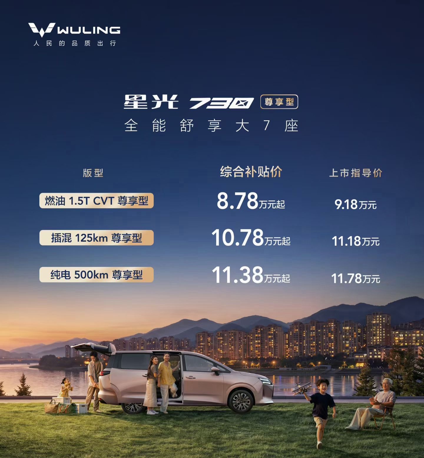 五菱星光730出了个尊享型8.78万、10.78万、11.38万