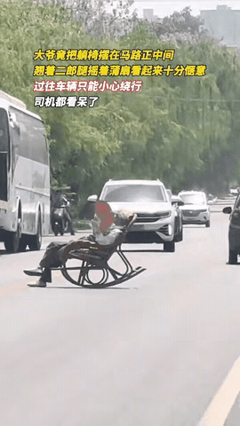 “不要命啦?”陕西,大爷把躺椅摆在马路正中间,翘起二郎腿悠哉悠哉的摇着蒲扇,太阳晒的那叫一个惬意,来往车辆只能小心绕行,司机都看呆了,网友:大爷,您是不是把马路当您家客厅啦! 视频中,大爷翘着二郎腿顶着炎热的太阳躺在马路中间,躺椅随着大爷的身姿前后摇摆,大爷时不时扇几下手里的蒲扇,路过的车辆纷纷鸣笛示意,大爷最多就是收一收腿,并没有离开的意思,车主们无奈,只能放慢速度小心翼翼的绕行! 这个视频在网上引起了网友们不小的争议! 有网友猜测:大爷是不是头脑不太好,才跑到大马路上晒太阳的! 也有网友表示担忧:大爷胆子胆挺大,可是车主们胆小呀,万一出个啥事,那可咋办呀? 大爷这种行为确实匪夷所思,不过看大爷这架势,大概率是有备而来吧,连躺椅扇子都准备好了,这是打算长期扎根了! 万幸这是白天,光线还挺不错,如果换做晚上,后果不堪设想,再说的难听一点,一旦出事司机最多赔钱,而老人受到的可能就是身体上的伤害啦! 我们历来有尊重老人的传统,但是如果老人倚老卖老,做出格的事情,那也是要遭人唾弃的,就连他觉得子孙后辈在左邻右舍面前都抬不起头! 虽然社会对老人的宽容度很大,但也请注意收敛,不要得寸进尺,一旦突破了法律的底线,也是要承担责任的,另外,我们要相信人在做天在看,因果轮回!