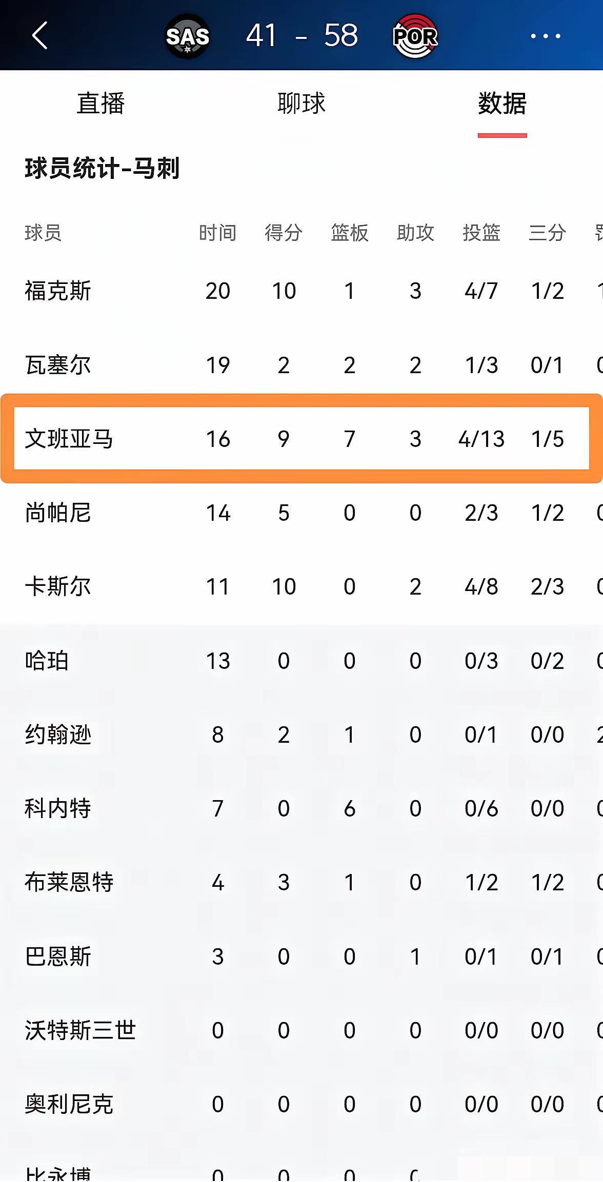马刺肯定后悔让文班亚马复出了!在今天马刺客场挑战开拓者的首轮G4中,目前双方半场战罢,马刺以41:58落后对手17分,形势看起来非常不妙。值得一提的是,虽然本场比赛文班亚马伤愈复出,但是文班亚马在前两节比赛中的表现却非常的低效。 谁都没想到这场关键季后赛会打出这样离谱的半场局面。赛前马刺管理层纠结再三,赌上全队局势紧急让休战五天的文班亚马火线回归,本想着靠这位核心王牌一锤定音,稳稳收下比赛拿下赛点,压根没料到复出之战直接打出最差半场表现,球队攻防两端全线崩盘。 看过直播的球迷心里都有数,文班亚马这两节打得完全不在状态,根本没有往日降维打击的统治力。全场出手12次仅仅命中4球,进攻端手感冰凉屡屡打铁,简单上篮不稳,中远投频频偏筐,拿分效率远低于常规赛平均水平。防守端也没了往日护框威慑力,脚步移动明显迟缓,面对开拓者球员轮番冲击内线,护框封盖跟不上节奏,拦不住对手频繁突破得分。 很多球迷赛后都在吐槽,马刺这次决策太心急,纯属典型得不偿失。文班亚马之前因为脑震荡休战,头部伤病可不是小问题,五天休整时间根本不足以让身体和竞技状态完全恢复。身体没调养到位,赛场节奏也没找回来,硬逼着核心仓促复出,非但没起到带队赢球的效果,反倒让球员带着伤病硬扛比赛,状态低迷还平添二次受伤的巨大风险。 开拓者这边早就摸透了马刺的心思,针对性战术布置做得滴水不漏。全员状态火热手感爆棚,阿夫迪亚半场狂砍13分,格兰特、霍勒迪轮番发力得分,三人联手撑起进攻大旗,靠着精准三分和内线强攻不断拉大分差,一度把领先优势扩大到19分。反观马刺全队军心涣散,除了卡斯尔和福克斯勉强各拿10分撑场面,其他角色球员集体哑火,三分命中率低迷,失误接连不断,全程被对手压着打。 网上球迷吵得沸沸扬扬,不少人直言马刺教练组决策太草率,不该为了急于晋级透支核心身体。也有理性球迷觉得不用慌,文班亚马只是半场没找状态,下半场调整节奏依旧有翻盘希望。季后赛拼的从来不是半场输赢,而是全场调整能力和球队韧性。 马刺队门班亚马 马刺榜眼 马刺骑士 马刺榜眼 马刺骑士 马刺榜眼签 开拓者选秀 马刺榜眼签 马刺榜眼签 马刺四巨头 马刺四巨头 马刺四巨头 马刺旧将 马刺旧将 奥斯汀马刺 半场落后17分看着局势凶险,但季后赛赛场一切皆有可能。你觉得下半场文班亚马能不能强势回暖,带队完成超级大逆转拿下比赛赛点?