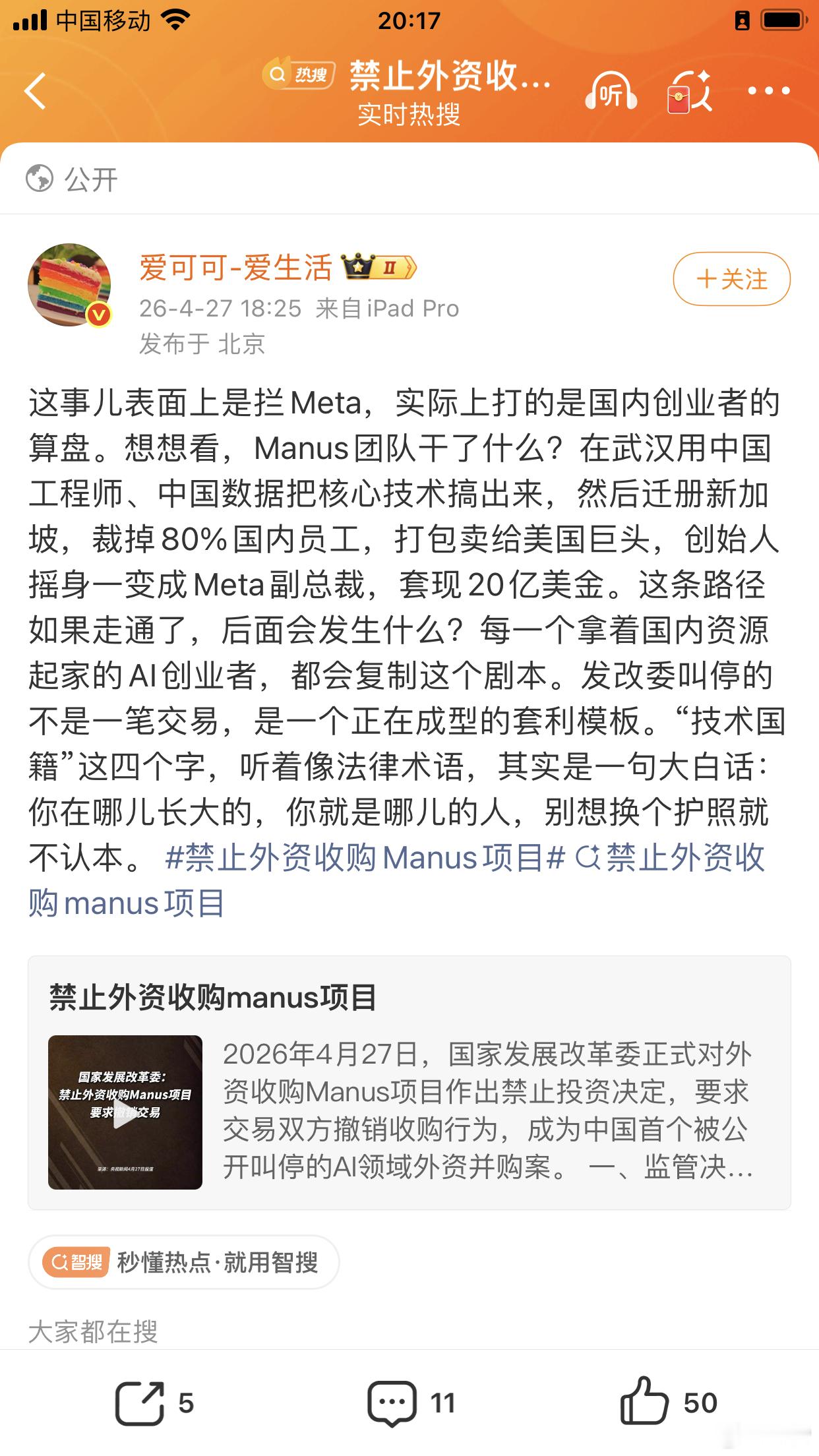 禁止外资收购manus项目非常好的提问,非常好的答案//评论配图//