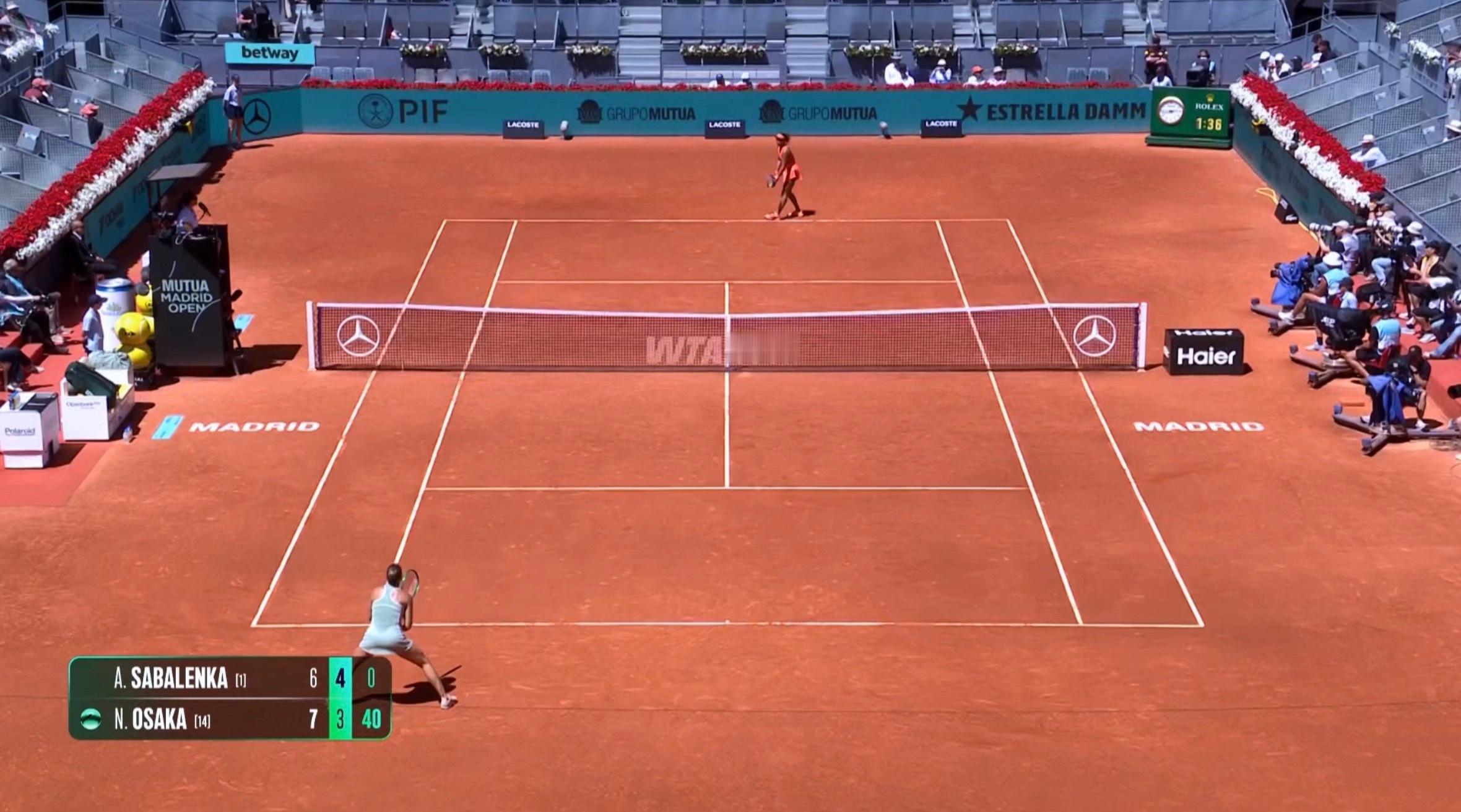 马德里1000赛 大坂直美第二盘最后一个发球局40-0没保住,萨巴抓住机会6-3扳回一盘!