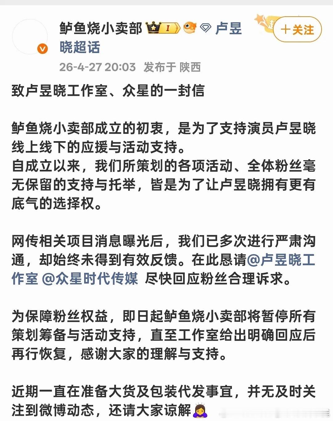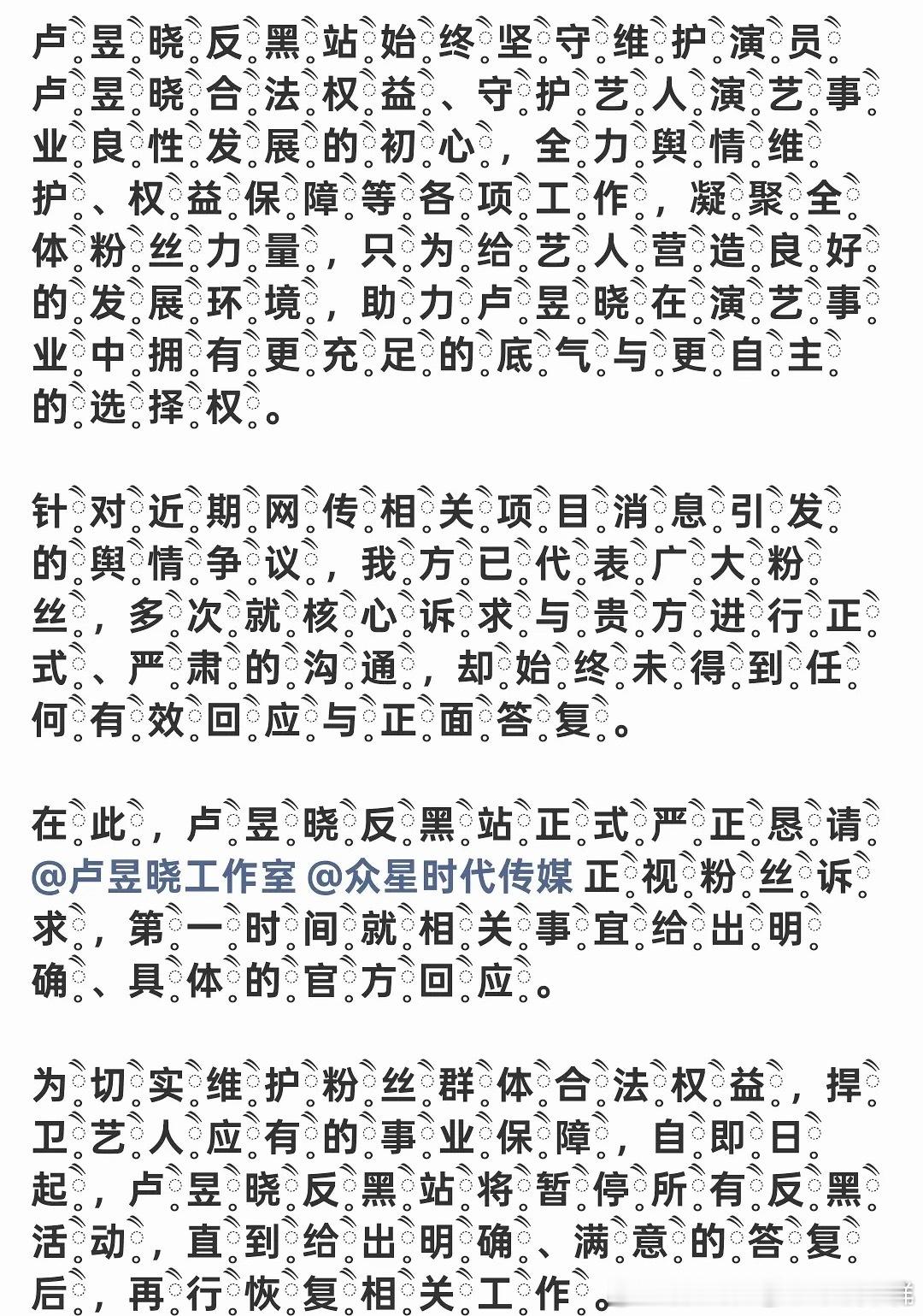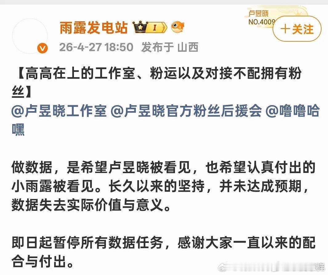 卢昱晓后援会各职能组因为拒绝恰逢雨连天失败暂停了不知道能坚持多久