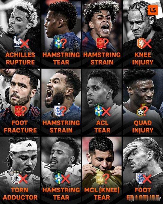 距离2026世界杯仅剩45天,多位重要球星因伤出战成疑或确定缺席。