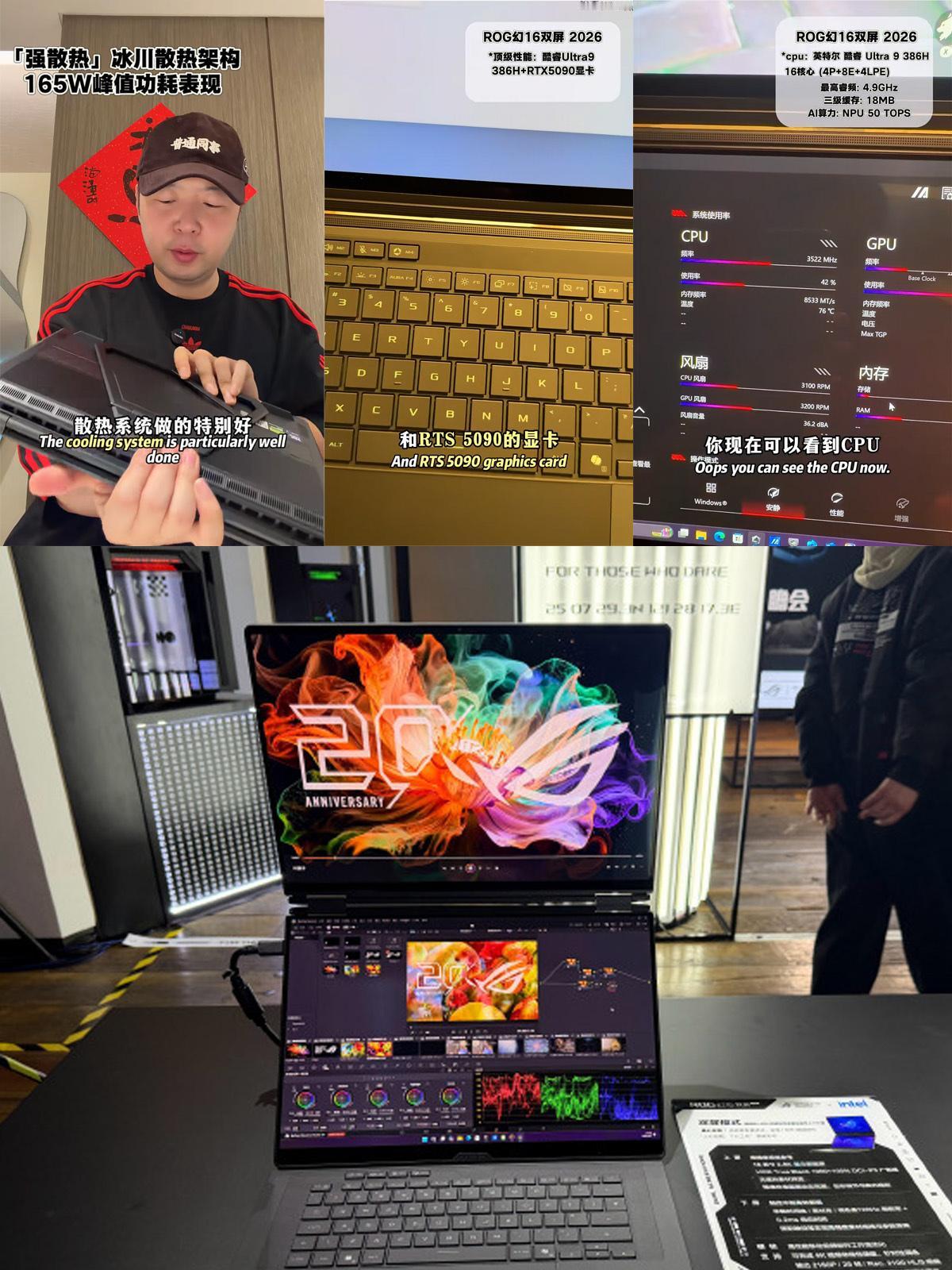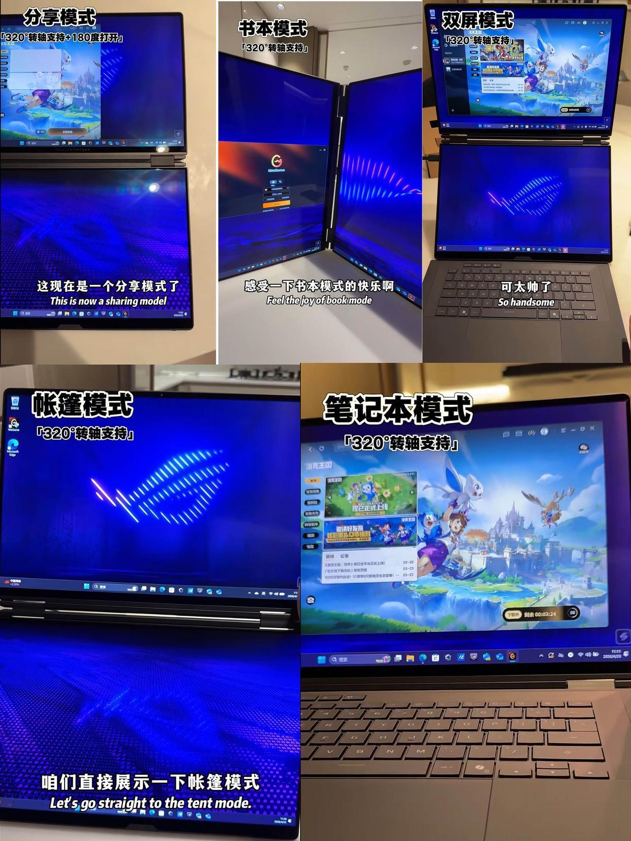 居然是幻16双屏!杜海涛这么喜欢ROG的嘛?[呲牙] 发现海涛是真喜欢ROG啊! 之前初代ROG掌机、ROG XBOX掌机X都用上了,最近又开箱上手了ROG幻16双屏!这么都让他抢先体验到了,我是真的慕了…… 不得不说这次幻16双屏确实有点东西的,两块高显示素质的16英寸星云原画屏,直接整出5种模式:笔记本模式、分享模式、帐篷模式、书本模式、双屏模式,咱也没想到这种双屏笔记本能玩出这么多花活,320度的转轴确实开拓出了一堆炫酷的玩法,有这样的玩法以后还外接显示器干啥? 关键是这本子性能也很顶,Ultra9+RTX 5090,直接拉满了兄弟们,真有点想拥有啊!ROG的产品好多都这样玩法又酷性能又强,难怪杜海涛喜欢 啊[灵光一闪]