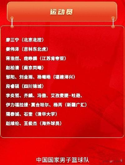 郭昊文“彻底”无缘国家队?——中国男篮国家队短训队19人名单公布,该有的都有了,独缺郭昊文! 1、没有进入季后赛的8支球队除天津外都有球员入选,其中新疆队有6人入选成为最大赢家,福建队邹阳、杨曦皓以及江苏队庞峥麟的入选是众望所归——南京队赵柏清入选没有郭昊文令人疑惑不解! 2、海外球员只有王俊杰和赵维伦——林葳依旧没有得到郭士强的赏识! 3、此次国家队短训是为2027年至以后为中国男篮储备人才,让后备年青球员更早熟悉国家队战术——虽然说大门永远向有能力的球员敞开,但这样“扩招”如果依旧不能入围,后期就很难入选了!