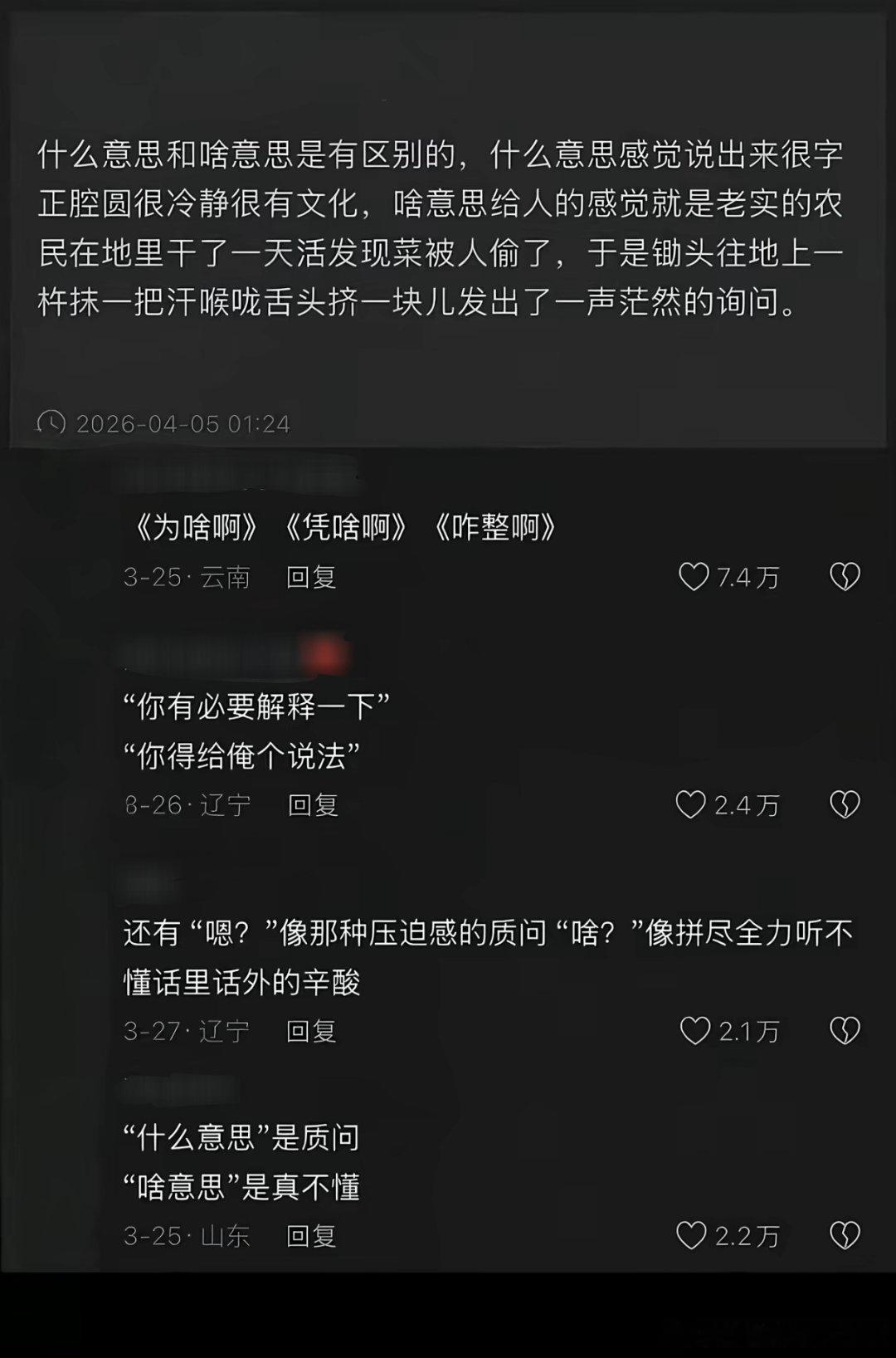 3584什么意思和啥意思是有区别的,什么意思感觉说出来很字正腔圆很冷静很有文化,啥意思给人的感觉就是老实的农民在地里干了一天活发现菜被人偷了,于是锄头往地上一杵抹一把汗喉咙舌头挤一块儿发出了一声茫然的询问。