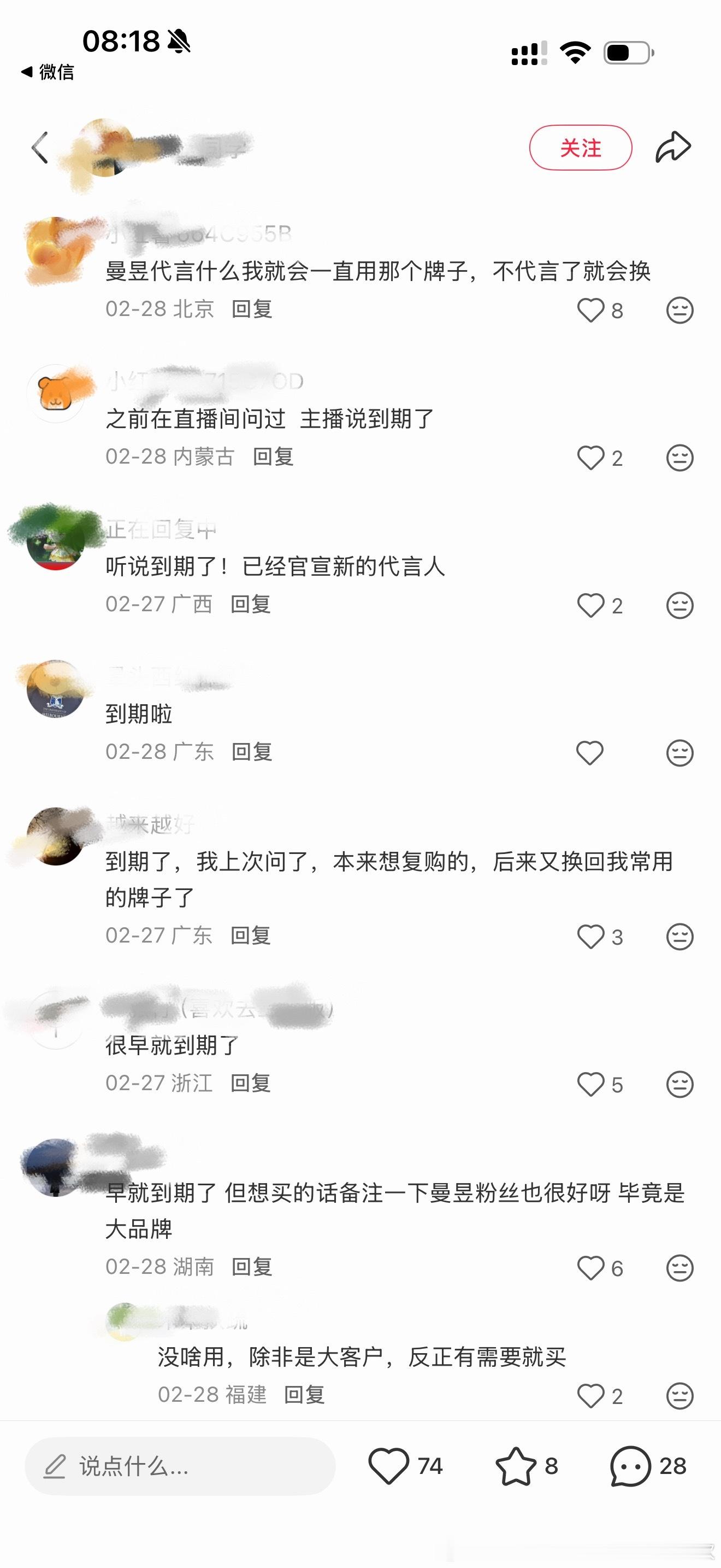 “应该是到期了,我看官博已经没有关注王曼昱了”“到期了,短代”“早到期了”“听说到期了,已经官宣了新代言人”