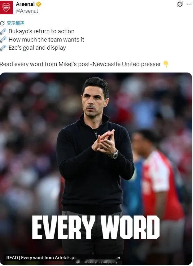 阿尔特塔出席了赛后新闻发布会,我们来看看阿森纳主帅的发言。