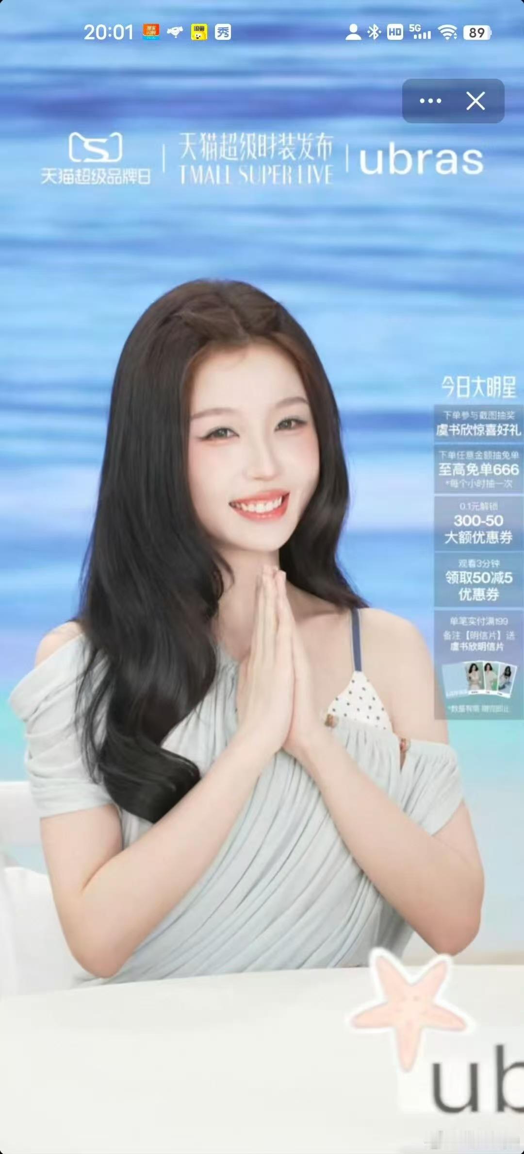 虞书欣蓝纱上衣虞书欣蓝纱斜肩look虞书欣蓝纱斜肩look,好美,