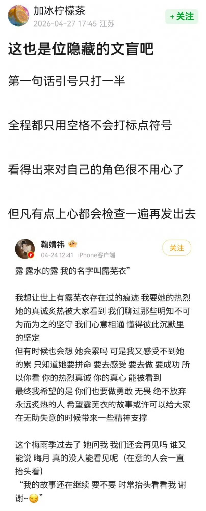 这有啥好审判的不打标点是个人习惯我有时候也不喜欢用标点我觉得空格很方