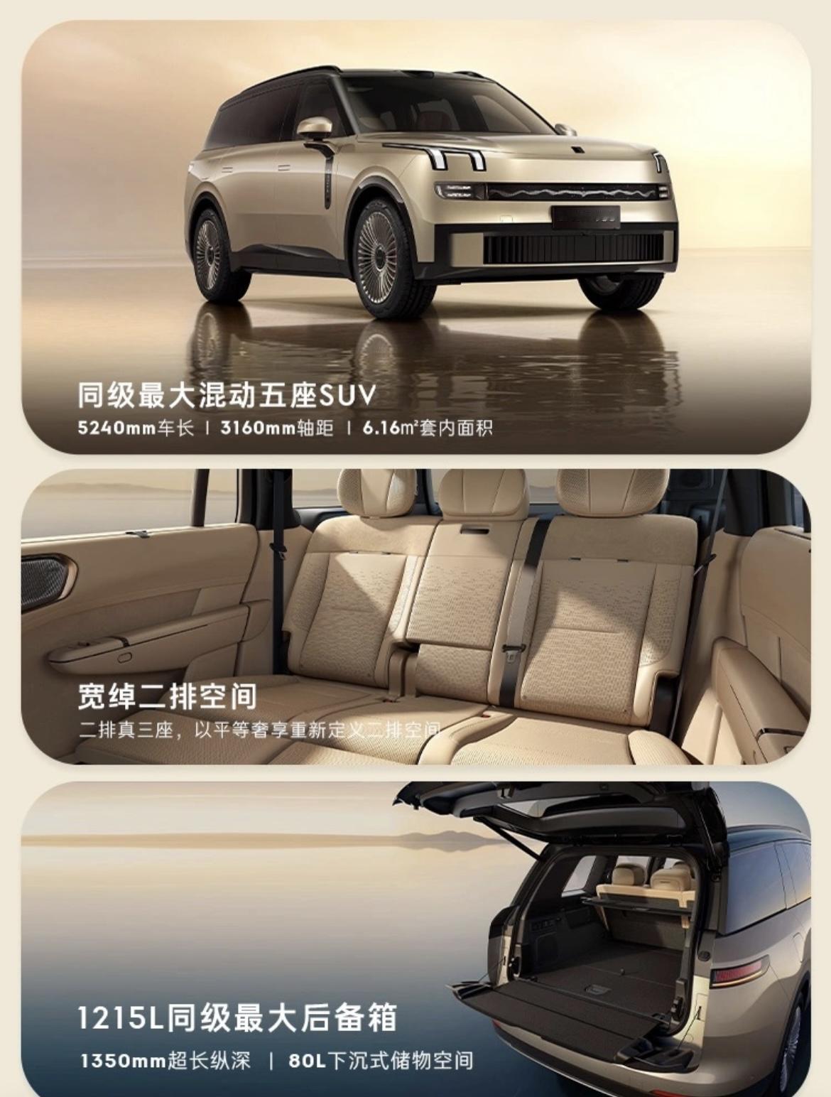 80方的房子拿来做两居室?来,领克900五座版上市,聊聊: 一直有人纠结:5米2的车长3米1的轴距,用来做五座,算不算一种浪费?老实说,领克900加推五座版,从产品的思路到逻辑都没毛病——大空间是更懂享受的体现。 首先,并非每个用户天天都有多人出行的刚性需求,所以对于他们来说,与其要使用频率不高、平时又占地、体验还一般的三排座位,真不如把大空间尽可能多地还给日常。 其次,领克900这次砍掉第三排,换来的可是全方位实用主义的大升级。座舱利用率直接大幅优化,乘坐、储物均变得更从容。超大后排纵深、宽裕到离谱的腿部空间,再加上扩容翻倍的后备箱,试问谁不想要这实实在在的乘坐松弛+储物自由?