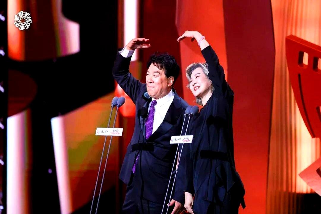 44年了……“老许,你要老婆不要?” 北京电影节的红毯上,朱时茂和丛珊又站在一起了。 一个71岁,一个63岁,头发都白了。他俩有点生硬地来了个双手交叠比心,然后相视一笑,全场都懂了。 时间仿佛直接被拉回1982年,祁连山下的牧场,那个叫许灵均的男人和叫李秀芝的姑娘。 那部电影叫《牧马人》,谢晋导的。 很多人说,这俩人之后就没再合作过,但每次同框,感觉故事就没断过。 这大概就是真正的“售后”天花板吧?