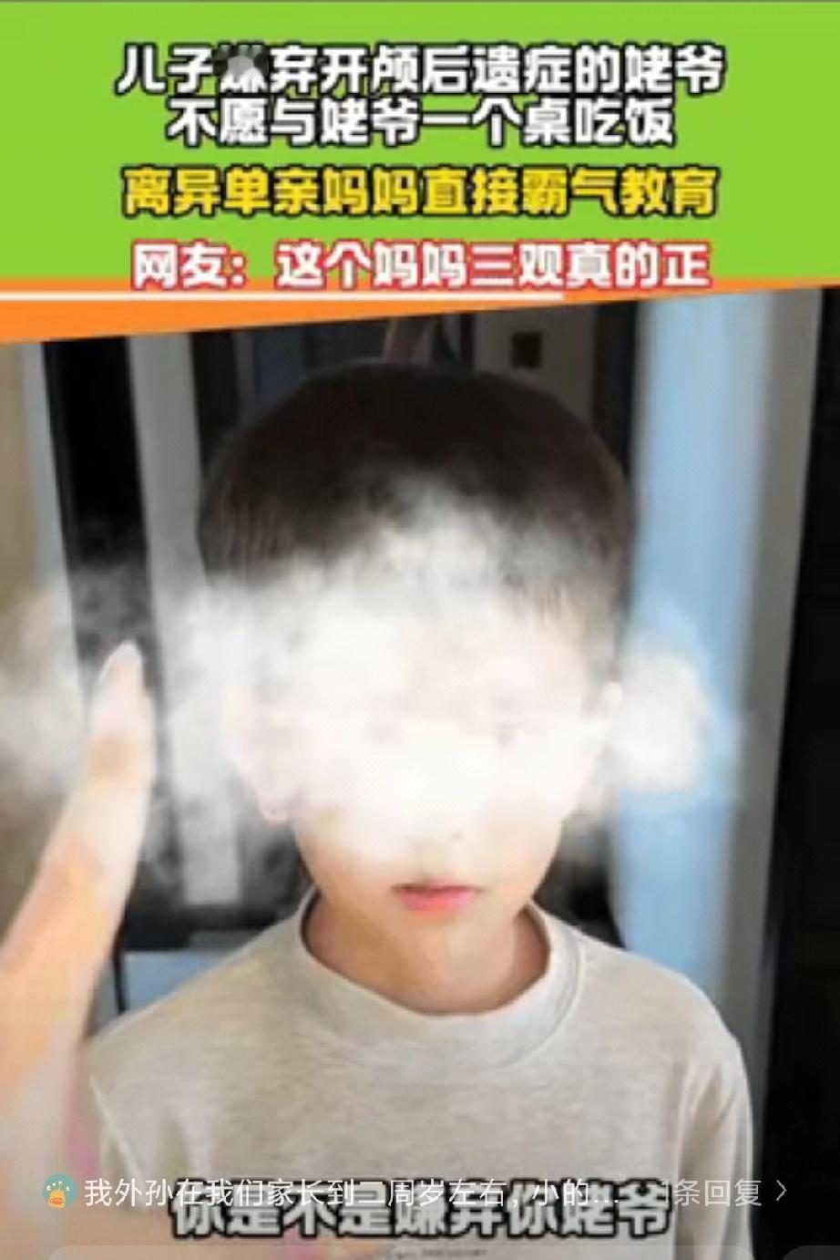 黑龙江,一小男孩在饭桌上因嫌弃姥爷,不想与其同桌吃饭。结果,单亲妈妈当场暴怒领起男孩就一阵严厉批评,随后,妈妈的一句:“不孝顺的孩子我指定忍受不了!” 饭桌上的气氛瞬间降到了冰点,姥爷攥着筷子的手僵在半空,原本带着笑意的脸一下子垮了下来,半天没说出一句话。这位老人平日里没少帮衬女儿,单亲妈妈要上班赚钱养家,孩子的接送、三餐、家务全是老人一手包揽,他没拿过一分酬劳,只想着帮女儿减轻点负担。孩子年纪小,只凭着自己的喜好做事,兴许是觉得姥爷吃饭时动作不够利落,或是衣着朴素不合自己的心意,就直白地表现出嫌弃,压根没意识到自己的话有多伤人。 妈妈拎着孩子的胳膊时,指尖都在泛白,她不是刻意对孩子动怒,是真的从心底里寒心。她一个人撑起整个家,最看重的不是孩子成绩多好,而是品行端正,孝顺长辈是她心里不可触碰的底线。老人含辛茹苦把她养大,如今又帮她照顾孩子,这份恩情孩子不懂,她不能跟着糊涂,若是这次纵容孩子的无礼,往后他只会越来越目中无人,连最亲近的家人都不放在眼里。 百善孝为先从来不是老旧的道德说教,这是中华民族传承千年的核心伦理,也是为人处世最基本的准则。家庭教育里,立规矩永远比溺爱更重要,孩子的三观都是在小事中逐渐形成的,餐桌前的一言一行,恰恰能看出最真实的教养。很多家长总觉得孩子还小,不懂事可以原谅,可纵容一次,就会有无数次,等到性格定型再想纠正,早就晚了。 隔代亲是当下很多家庭的常态,老人倾尽所有疼爱孙辈,换来的却常常是孩子的理所当然,甚至是嫌弃排斥,这不是孩子的天性,而是家长缺少了最关键的感恩教育。这位单亲妈妈没有因为孩子年幼就妥协,当场直面问题、严厉批评,看似强硬的做法,实则是最负责任的教育。她清楚地知道,不懂得尊重长辈的孩子,即便未来再有本事,也很难拥有共情能力,更不会懂得珍惜他人的付出。 生活里这样的场景并不少见,不少孩子对着长辈颐指气使,家长却一笑置之,觉得是孩子可爱,殊不知这是在一步步毁掉孩子的品行。孝顺从来不是长大后才要做的事,而是从小刻在骨子里的习惯,给老人递一双筷子,吃饭时不挑三拣四,说话时语气温和,这些小事都是孝顺的体现。 这位妈妈的那句狠话,骂的是孩子的不懂事,守的是家庭的底线,更是给所有家长提了个醒。比起物质上的满足,教会孩子尊重与感恩,才是父母送给孩子最珍贵的礼物。一个连至亲都不懂得善待的人,未来在社会上也很难得到他人的尊重,品行的根基,永远要从小扎稳。 各位读者你们怎么看?欢迎在评论区讨论。