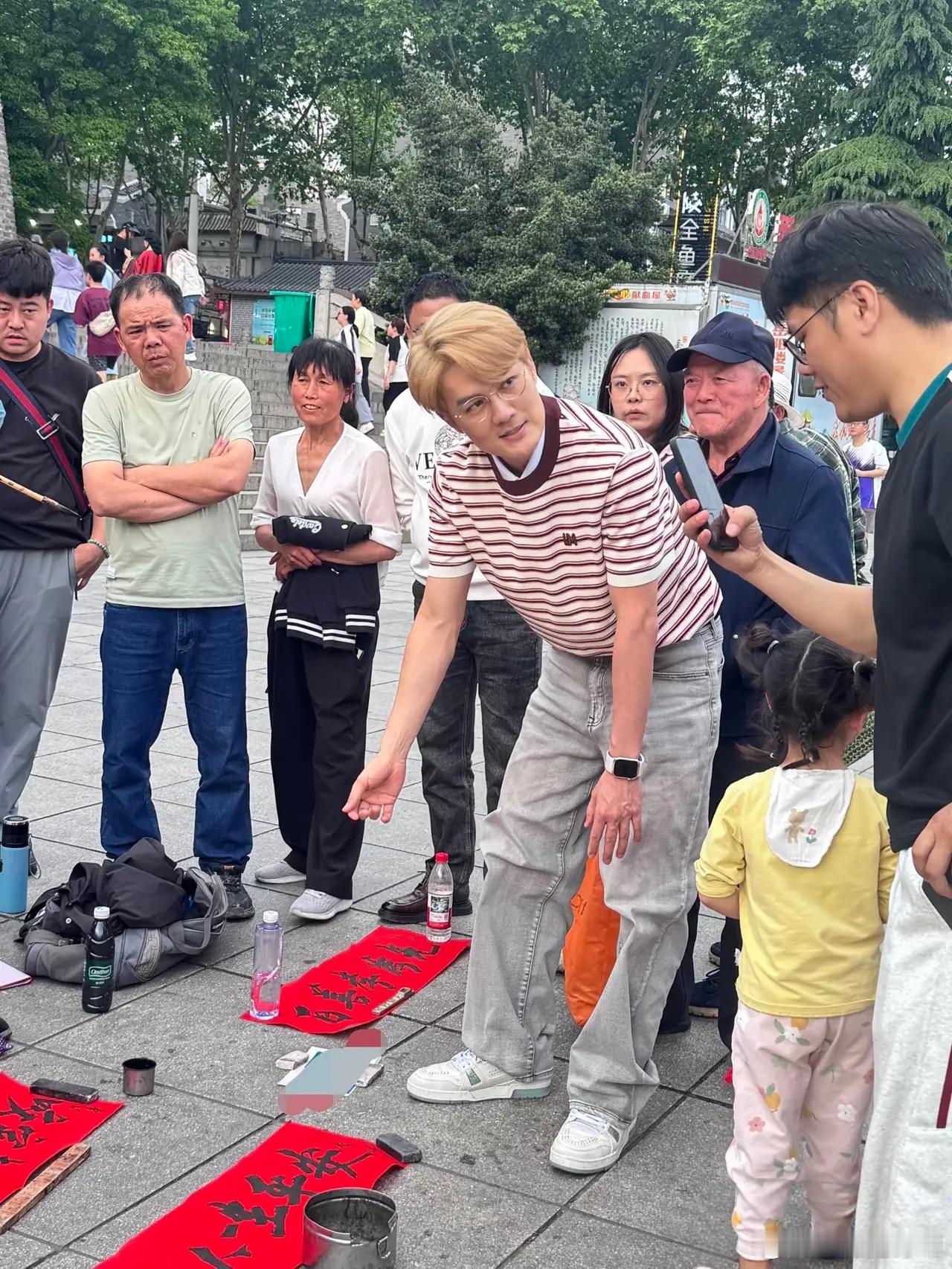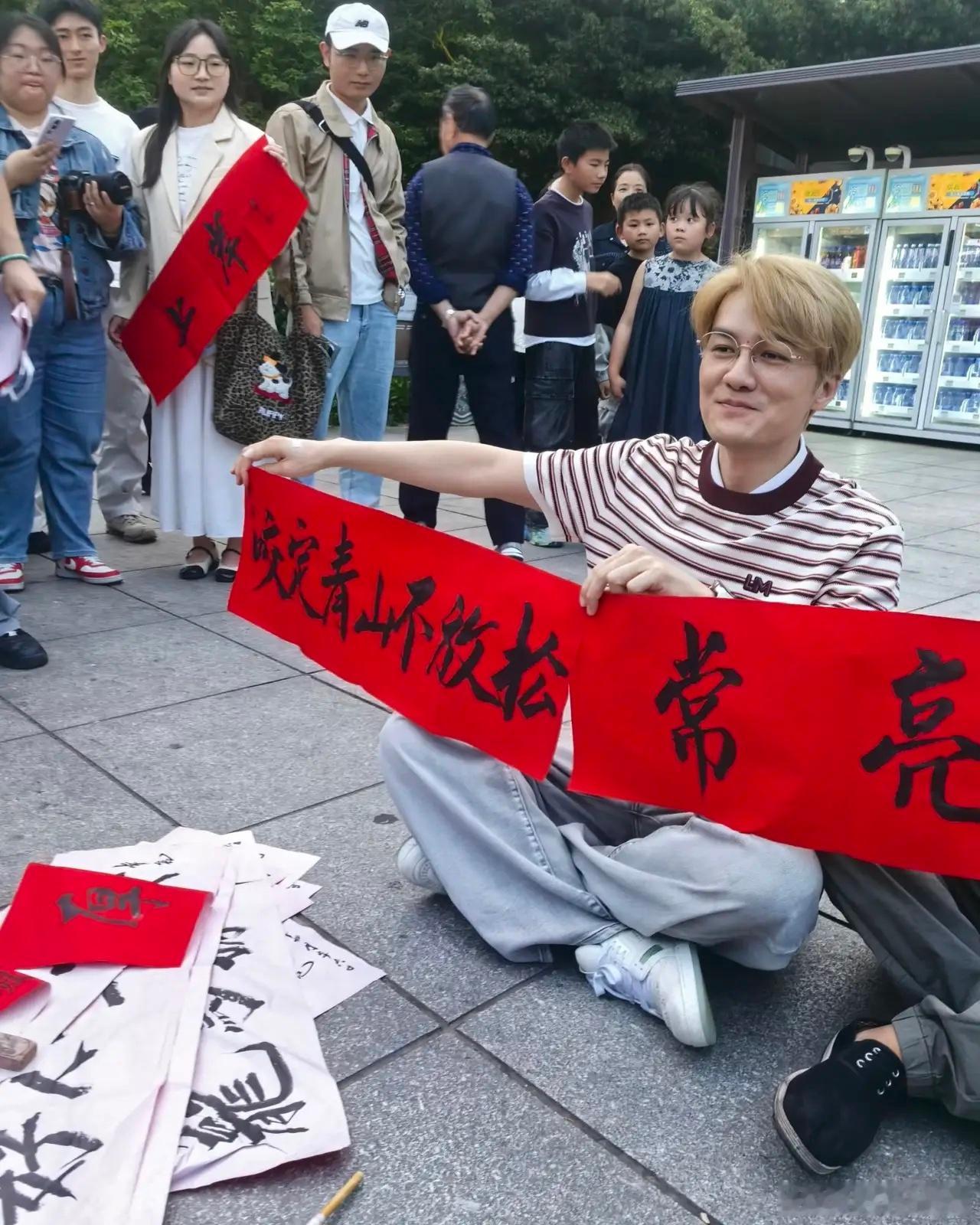 吴克群现身岳阳巴陵广场,帮一位残疾人卖书法作品,他不顾明星形象,坐在地上向周围的路人吆喝,全程不摆架子,非常有亲和力!