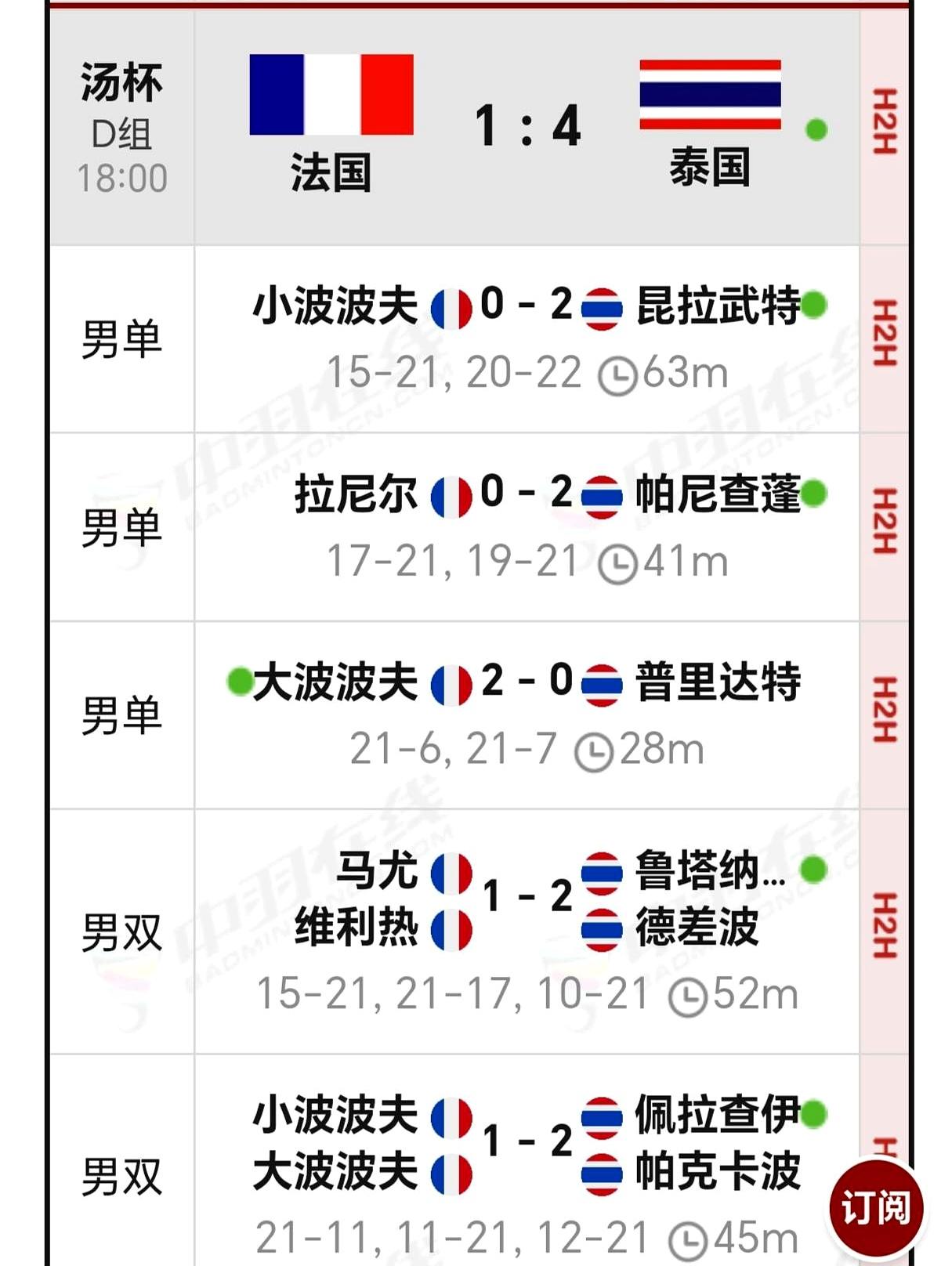 法国队最后一战要死磕印尼了!汤杯这D组简直是地狱模式。 印尼队刚跟泰国队打满五场,3-2惊天逆转拿下,乔纳坦他们当时都快顶不住了。 昆拉武特上来就啃下了一分,打得那叫一个凶。可惜泰国队后面没撑住,被人家翻了盘。 这下好玩了!印尼两战全胜,法国和泰国都是一胜一负。 最后一轮,泰国队碰上弱旅阿尔及利亚,拿个5-0应该问题不大。 真正的悬念全在法国队这儿!他们必须大比分赢下印尼,才有机会拼小分出线。 输了,波波夫兄弟就直接回家。这剧本,太刺激了……