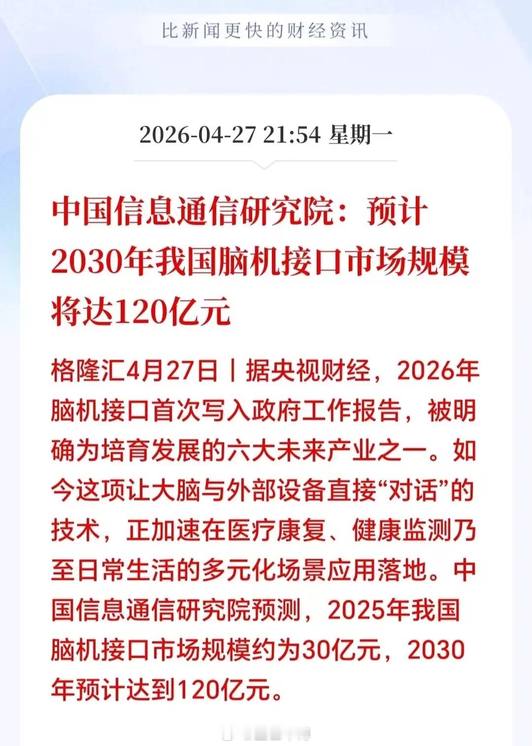 刚刚突来大消息,2026年脑机接口正式纳入重点项目,被国家钦点为六大“未来产业”之一。