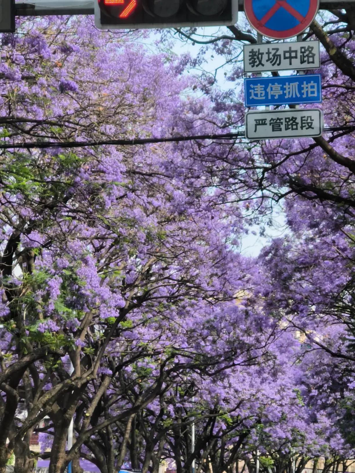 这有什么好看的,友友们,求求你们放过昆明的这一抹紫色吧!在盘龙江边的桃园广场边上也遭秧了。 对我来说,尤如草海隧道口边上的芦苇荡一样,一到秋天全是人,就在家门口,都不特意去看,主要还是被人们遭踏踩得心痛。其实这些去凑热闹看蓝花楹的,都不知道这种树的属性,是什么科,里面的是蕊是黄色,紫色,白色,只知道一阵疯狂的拍,然后修图P图,美颜等。目的就是一个发个朋友圈⭕,有的还好发头条抖音,宣传了昆明,让更多的人知道这是昆明,昆明的教场中路上的蓝花楹最集中。还是请附近市民朋友们多些理解,一年就一个月左右的时间对你们影响了。
