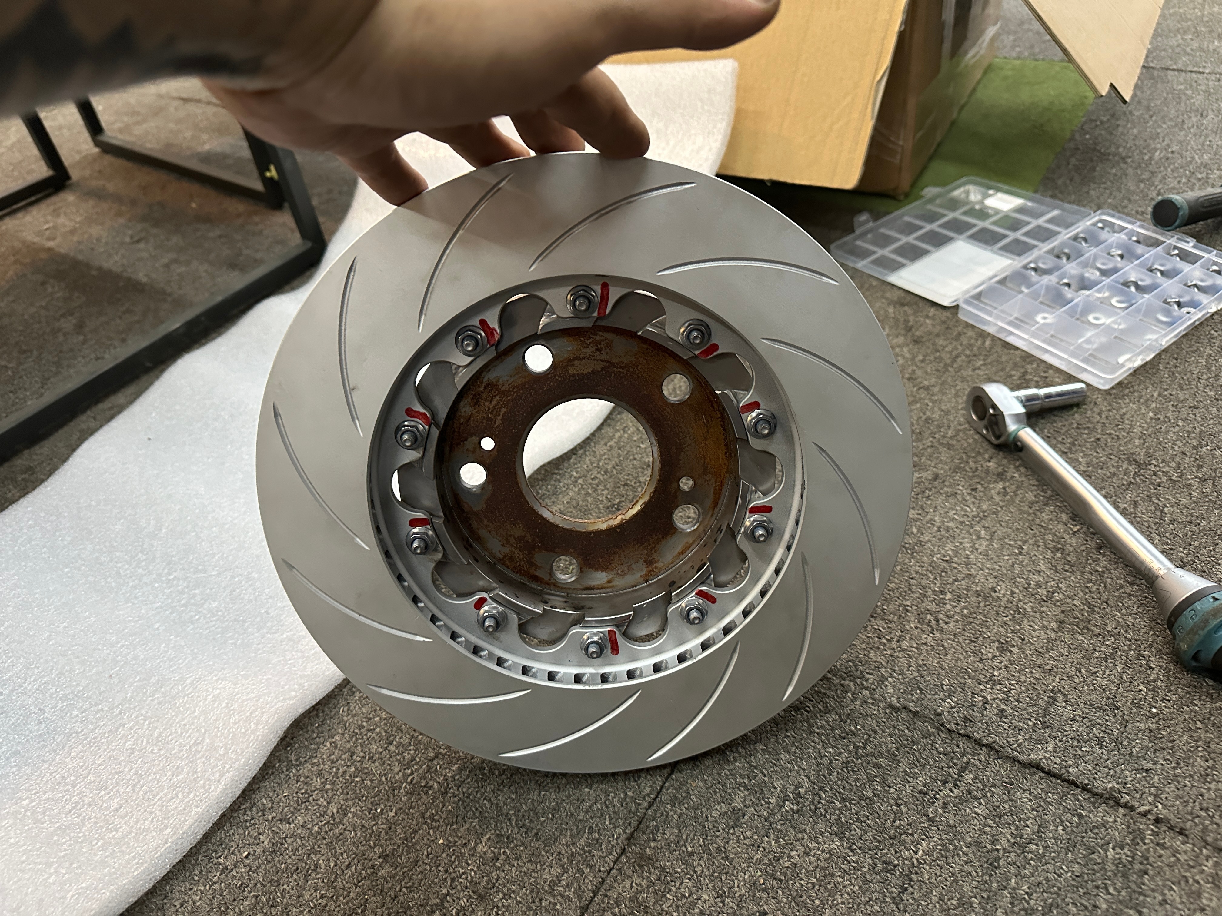 胎之大,一车拉不下。12个轮毂带胎,8个轮毂,5条大光头。
