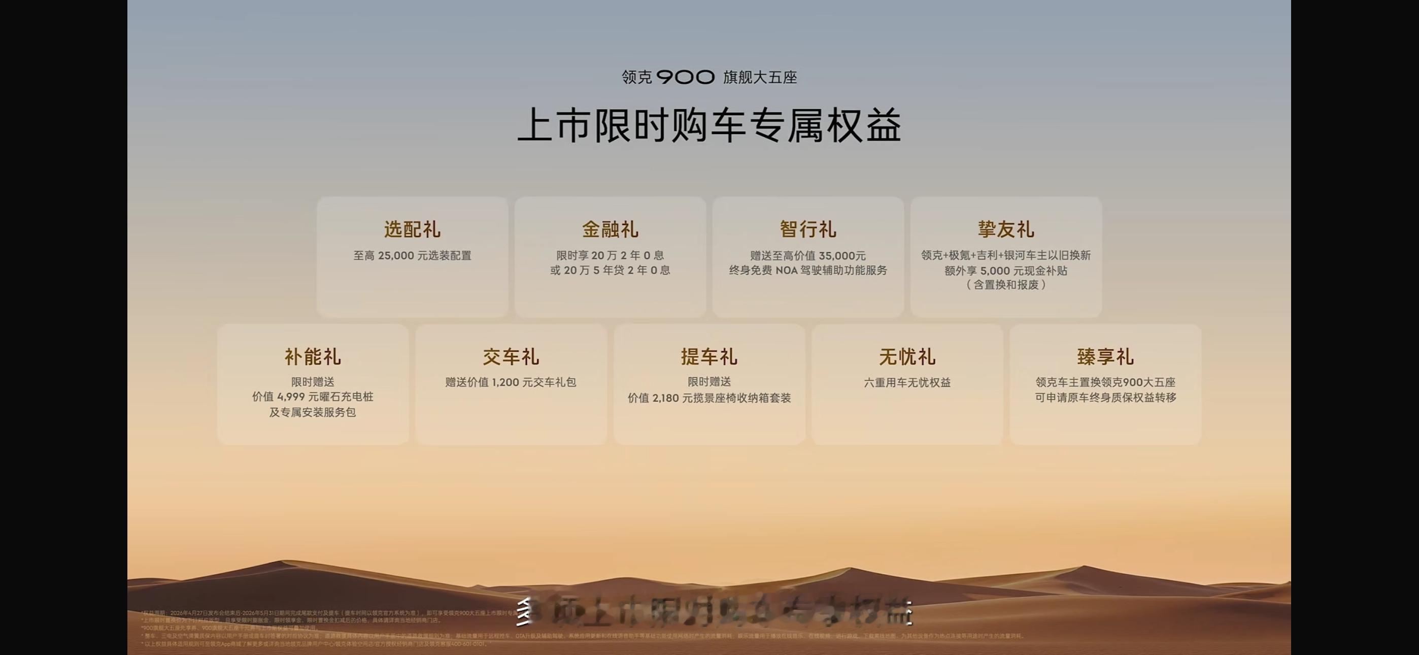 现在买车还送不少东西:有最高25000元的选装额度~还送终身免费NOA驾驶辅助服务,老车主置换额外补5000块另外还送充电桩、交车礼包、座椅收纳箱,还有用车无忧权益和质保转移的福利。领克900为什么要做这么大的五座领克900大五座上市限时25.48万起