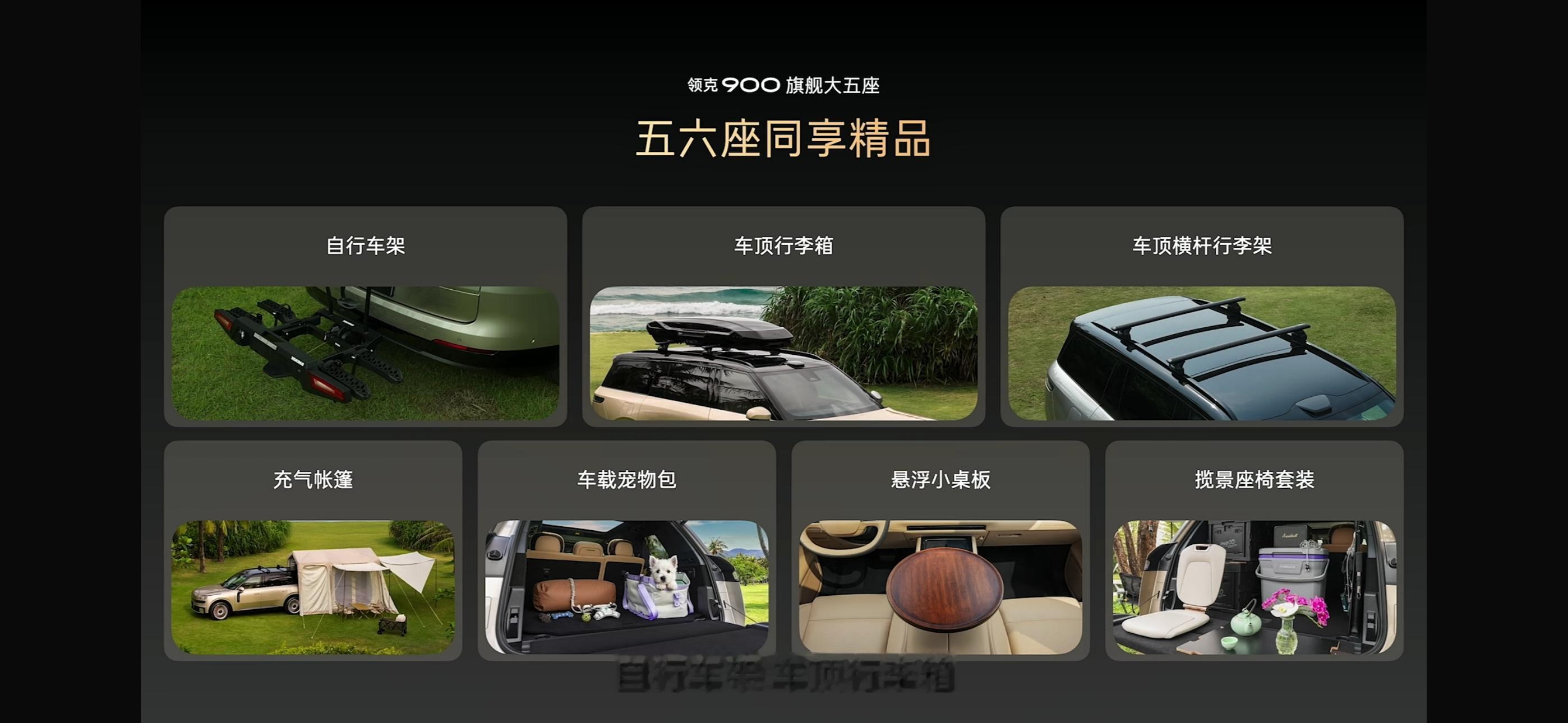 原厂还有充气床垫、天幕桌椅这些配件,直接一站式配齐,不用自己瞎折腾。开它出门,不管是短途野餐还是长途自驾,都能把车变成你的专属移动基地。领克900旗舰大五座场景之王