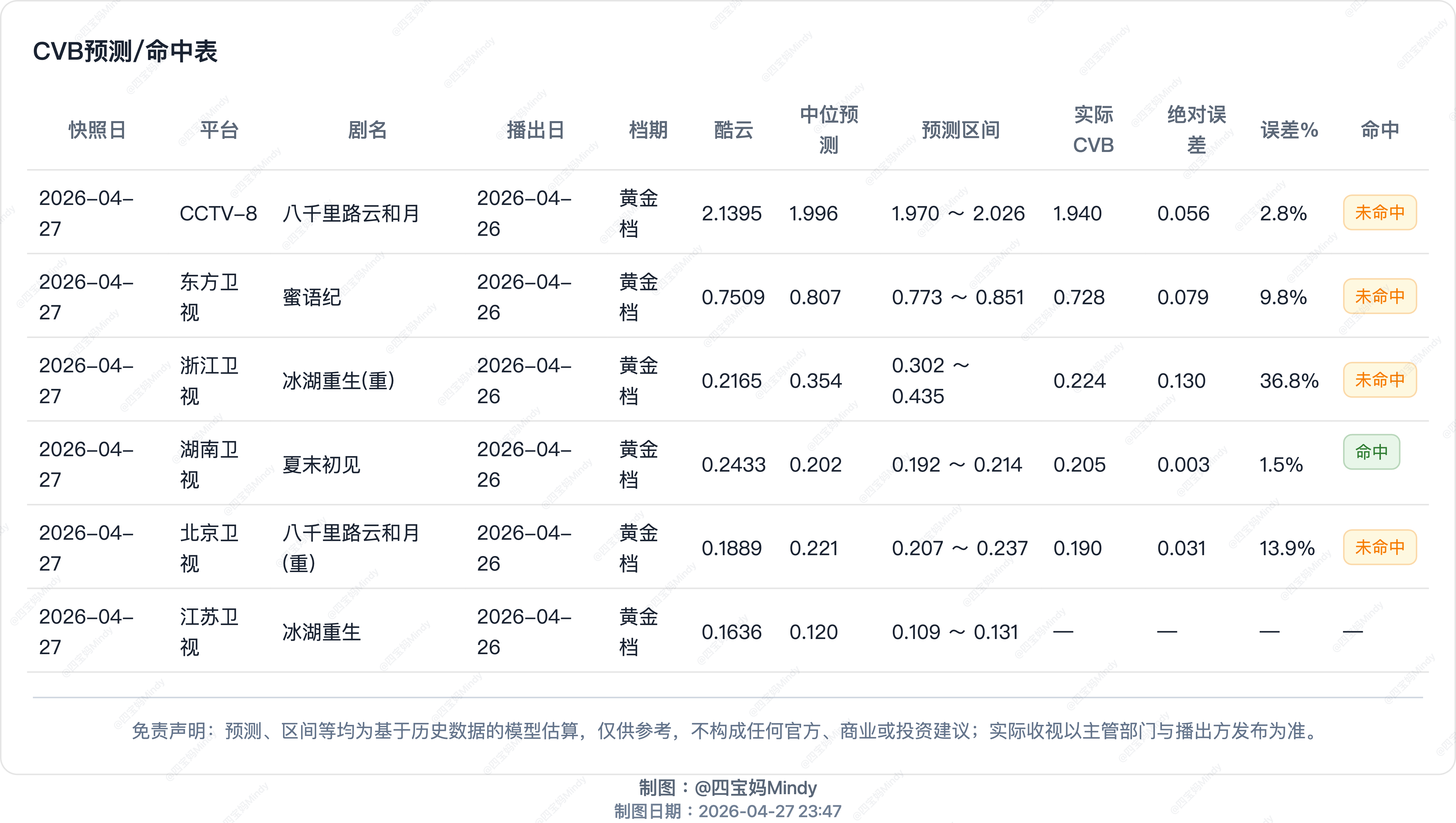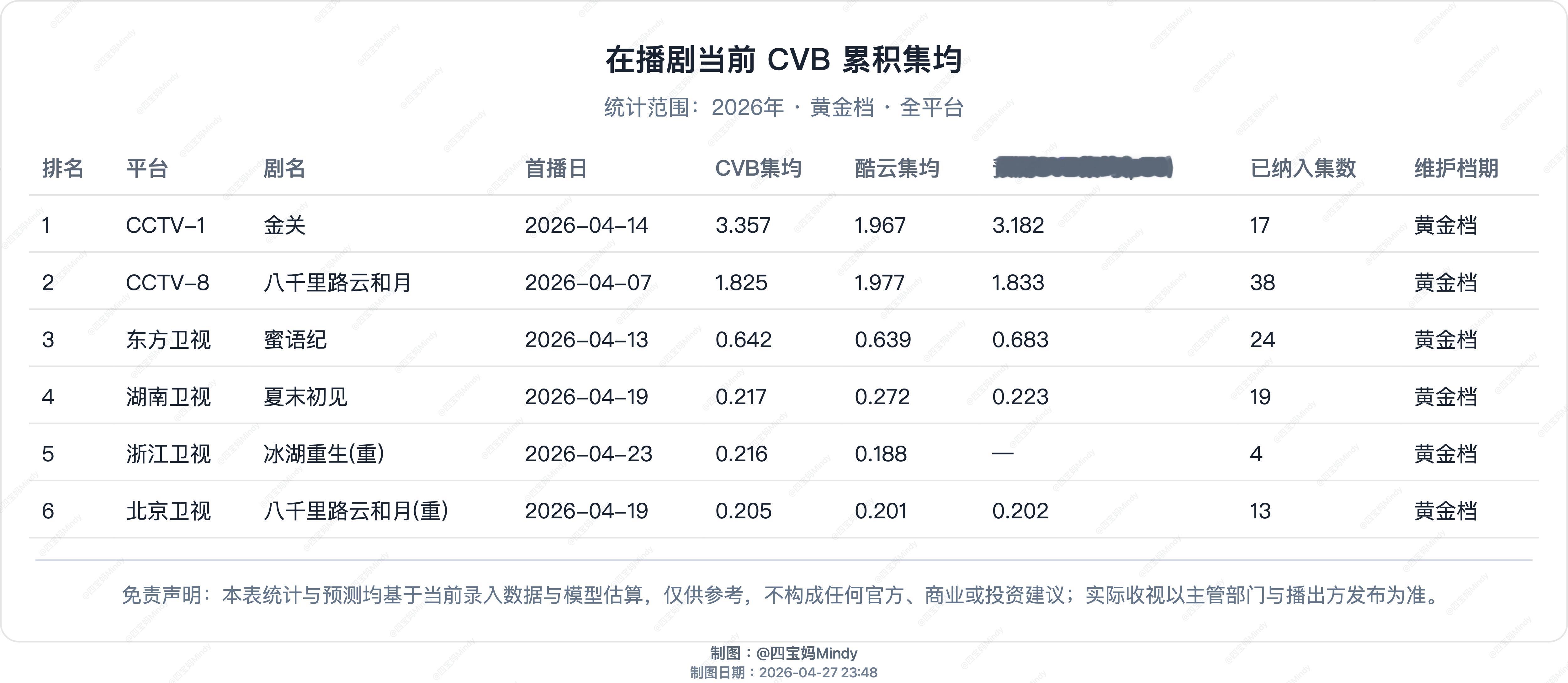 在播剧:金关、八千里路云和月、蜜语纪、冰湖重生 、夏末初见