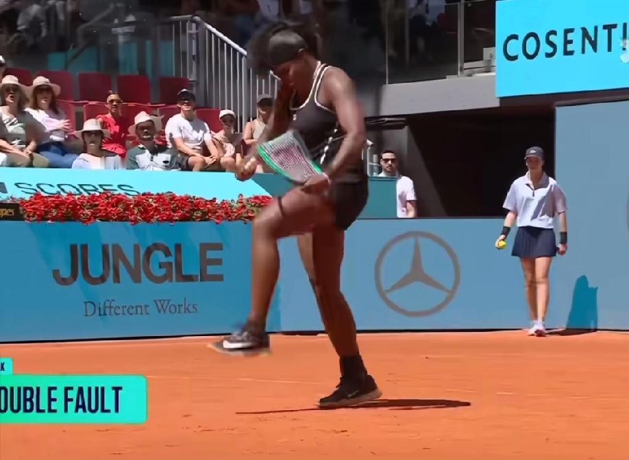 马德里公开赛女单比赛中最劲爆的一幕,网友称之为“见过的最帅的女子砸拍动作,这一气呵成,足可以媲美男子的萨芬、梅总”…… 能做出这种动作的,就是这位身材堪比男运动员的卡普蒂斯特,因为不满自己赛点连续发出双误,这位美国球员也是将自己的一腔怒火发泄到自己的吃饭家伙上了! 发觉美国女球员好像发球都不是很好,有一个高芙还不够,现在还来一个卡普蒂斯特,而且她俩有些双误都是非常离谱的,让人忍俊不禁的那种!