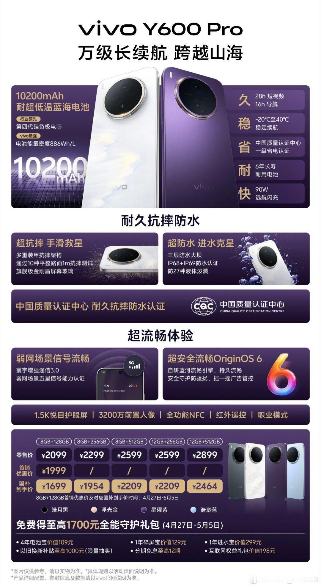 数码闲聊站 vivo Y600 Pro的外观是不错,顶配价格也还可以接受。但时过境迁,过去这千元级的配置如今也大概涨了大几百元,且行且珍惜吧6.83" 1.5K 120Hz OLED 直屏,4320Hz PWM 调光,1.35mm 边框 MediaTek 天玑 7300e LPDDR5 + UFS 3.1 50MP (1/2.88") (EIS) 主摄 32MP GC32E1 前摄 10200mAh🔋 + 90W⚡ Android 16 & OriginOS 6 通信增强芯片 E1 3810mm² VC 散热IP69/68,红外遥控,旁路充电,USB 2.0 Wi-Fi 6,Bluetooth 5.4,NFC 8.15mm221g