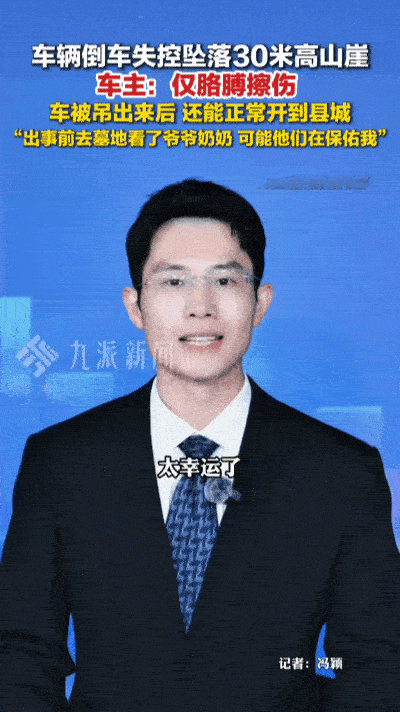 三十米山崖坠车,男子死里逃生堪称奇迹! 不敢想象!江西新余一段山间公路上,上演了一场惊心动魄的生死瞬间,车主死里逃生,简直是现实版的奇迹! 事发当天,杨先生驾车行驶在崎岖山路上,行驶过程中,车轮碾过路边碎石,车身突然出现异常响动。紧接着,他在倒车操作时踩下刹车,却发现刹车完全失灵,车辆瞬间失去控制,顺着陡峭的山坡飞速向下滑去。 突如其来的变故让杨先生来不及反应,只能下意识抱紧头部,蜷缩在驾驶座上。失控的车辆一路俯冲,短短瞬间就冲下三十米高的山崖,路边的树木不断撞击车身,场面险到极致。 随着一声剧烈的撞击声,车辆最终停在了山崖下的灌木丛中。惊魂未定的杨先生慢慢缓过神,检查后发现只是胳膊被擦伤渗血,并无骨折等重伤。他推开车门,只见车身右侧严重凹陷,保险杠彻底变形,车轮深陷泥地,一旁就是幽深的山沟,稍有偏差后果不堪设想。 杨先生忍着伤痛,徒手攀爬上山崖,双手被路边茅草划出不少伤口。事后他坦言,刚祭拜完长辈,总觉得是家人在冥冥之中护自己周全。 随后吊车赶到,将严重损毁的车辆吊上岸,围观村民无不震惊,谁都没想到从三十米山崖坠下,车主能毫发无损。更让人意外的是,这辆车居然还能正常点火启动,杨先生勉强驾驶着车驶离现场。 如今这场惊险经历也给所有人提了醒,山路行车风险重重,每一个操作都不能马虎。 大家开车出行时,有没有遇到过突发的危险状况?平时开车都会做好哪些安全检查?快来评论区聊聊! 山崖坠车生还奇迹 山路驾驶安全须知