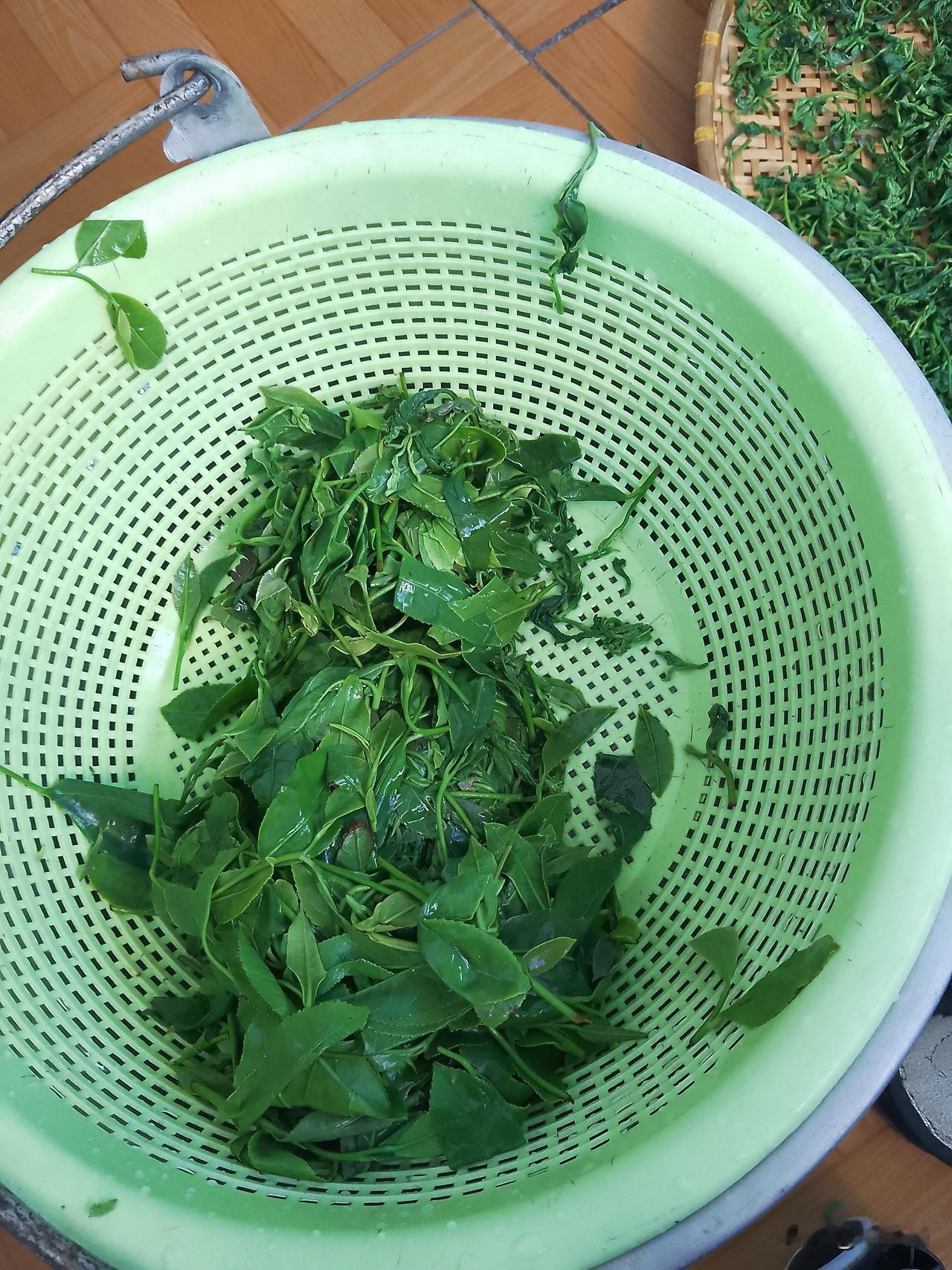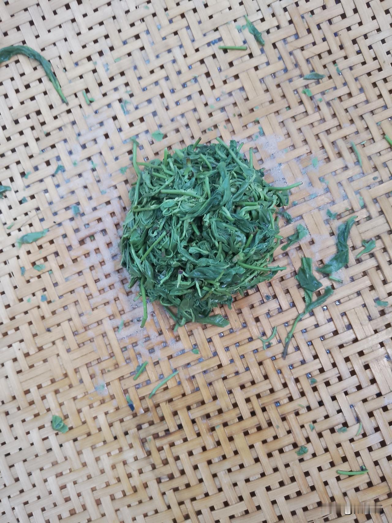 茶叶还是自己做的味道好! 茶柜上摆满的红茶、普洱、白茶、黑茶,还有一些叫不出名字的茶,在柜上呆呆地摆着,没有一样喜欢。平日,不是送人,就是布着微尘。 唯有水洗绿茶是我与老伴所爱! 几年来,未到五峰山摘茶,更没有亲手做过茶了,绿茶全是买。但总有种六一公公送豆一般,味道远远没有迅哥儿自己搞的好! 一早,老伴买来了35元的现摘绿茶叶,尝试自己做点洗水绿茶。 用开水做两次泡了,随即用凉水反复清洗,既给茶叶降温,也是为了洗去叶上的灰尘污垢。然后捞出用力捏成团,挤出叶间水分。 接着是一次拿一个茶叶团在簸箕里反复搓揉,把茶叶揉细揉成团,搓揉出茶叶间的苦涩水,然后捏干水分,晾在竹扁或簸箕里,以便于风干! 这次的茶叶老了点,再揉叶片也显大。 不过,开水中放几片半干的新茶叶,那醇厚浓郁的茶香还是直沁心脾,丢几片口中一嚼,半涩半甜真是回味无穷! “收获了八两干茶,划得来,明年还是自己做茶吃!”一早,老伴就乐呵呵地跟我讲。 “赞同!主要是自己做的味道好!”我附和道。 2026.4.28.