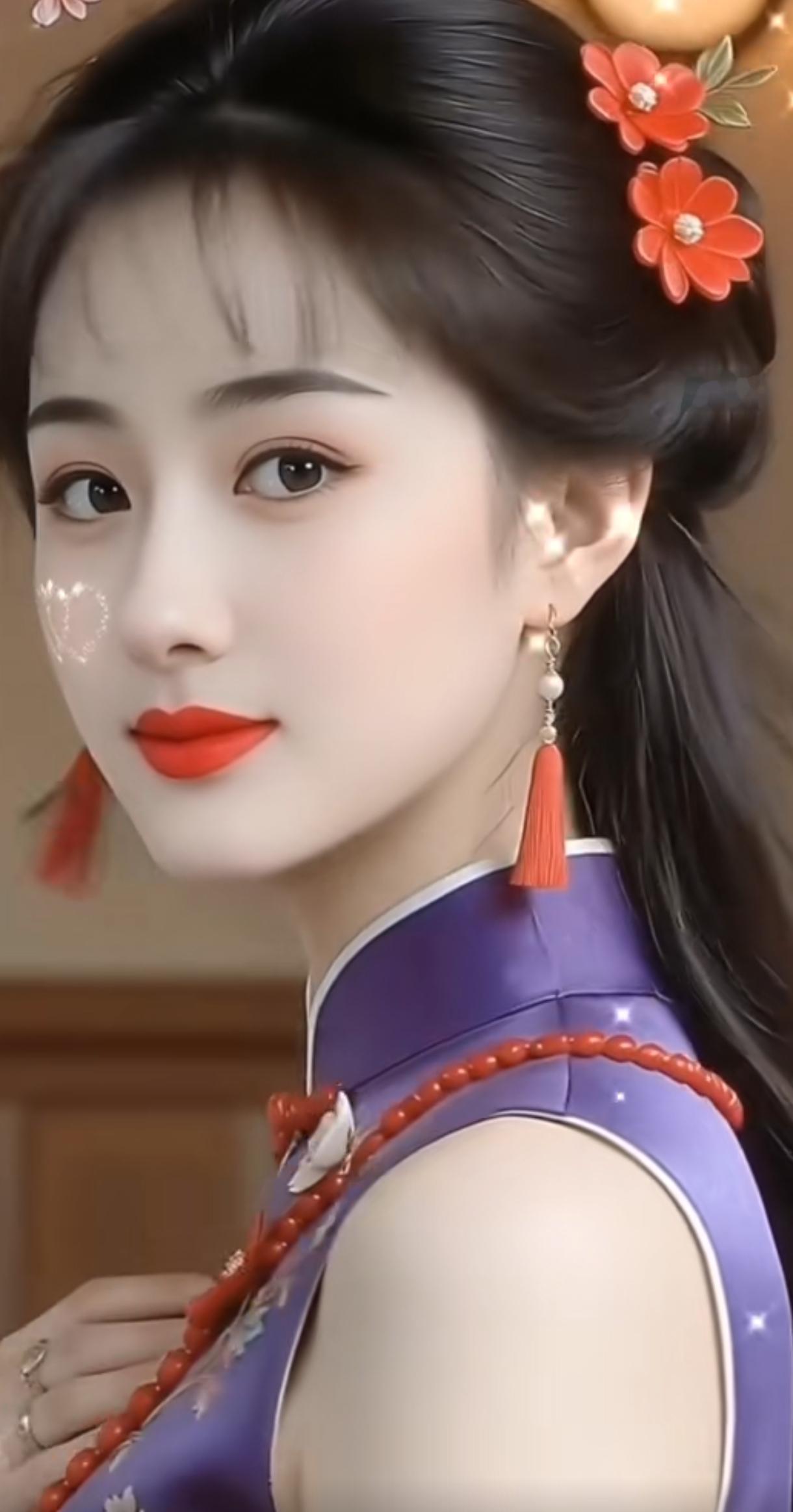 惊艳的古典美人,红唇与花饰相映成趣,古风韵味十足!🌸💄👗随手拍,分享图片 古典温婉美女 古典汉服美人