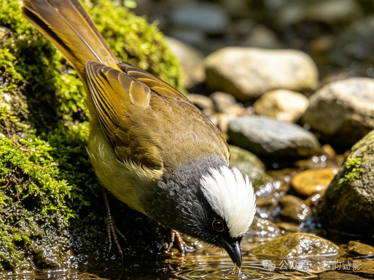 每天一鸟今天分享白冠噪鹛 白冠噪鹛这名字自带仙气!它的白色羽冠像戴了顶小皇冠,黑色眼纹又添了几分灵动。以前在云南见过它们成群嬉戏,叫声清脆得像在开森林音乐会,羽毛配色真是大自然的妙笔!