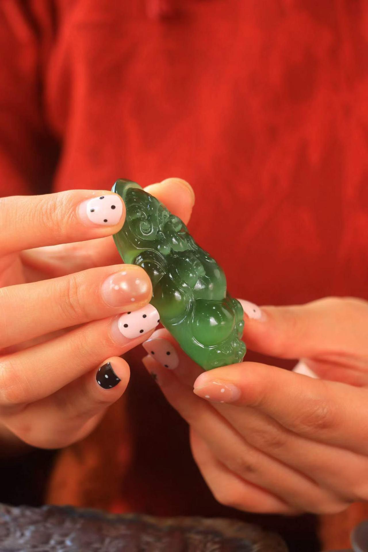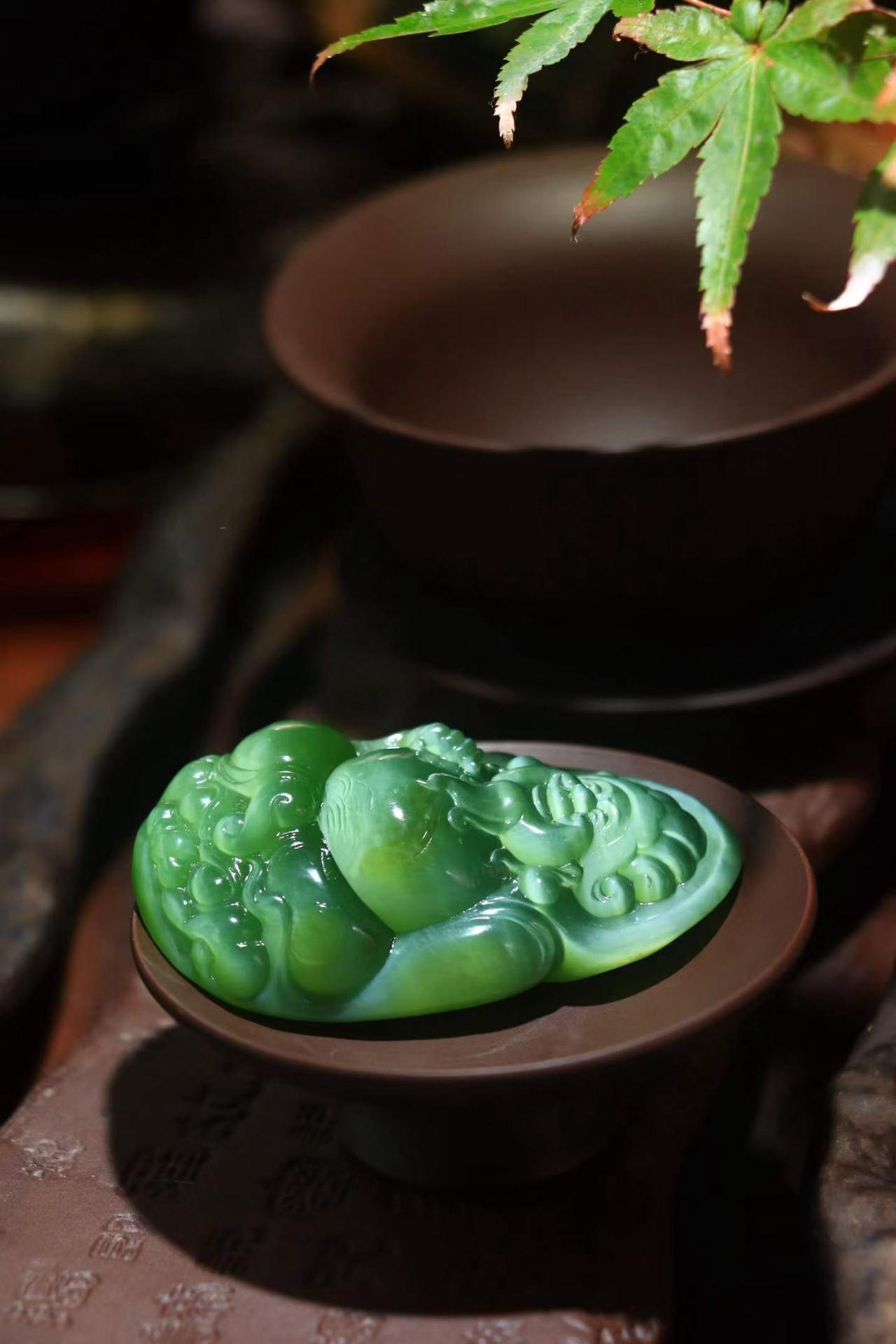 收藏〈碧玉.财源滚滚〉 和田玉老坑碧玉猫眼⚡️,质地温润细腻过灯,饱满油润。工艺精细,精雕财神,喜笑颜开,招财进宝~雕刻财神爷,喜笑颜开,春光满面,寓意财福并至,八方来财,源源不断~ 规格:69.8/38.4/23.5重90.1 YHJ0425
