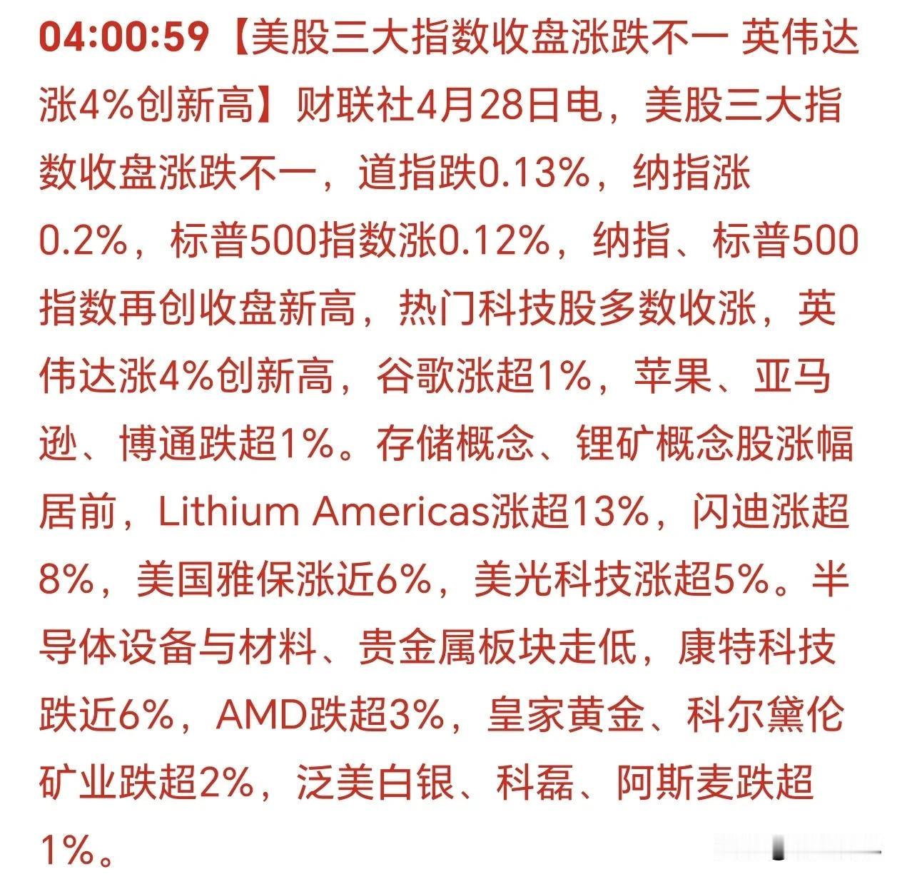 美股昨晚又是精彩一夜! 三大股指涨跌不一,但英伟达太猛了,继续往上冲,这是直奔6万亿市值的节奏啊。 新能源这边也热闹了,锂矿概念回暖,像天华新能这种,感觉那几个百元股又要回来了。 不过这次不一样——都是有业绩支撑的,不是纯讲故事。 中美科技较劲,股市也在暗暗比着涨。你涨我也涨,这“美股化”的风格让很多老股民直呼不适应。 以前看大盘就行,现在得盯着英伟达的走势做A股,不学习真跟不上节奏了。 但话说回来,有业绩、有逻辑的科技股,确实值得多看两眼。 时代真的变了,你觉得咱们的科技股能跟上这波节奏吗?