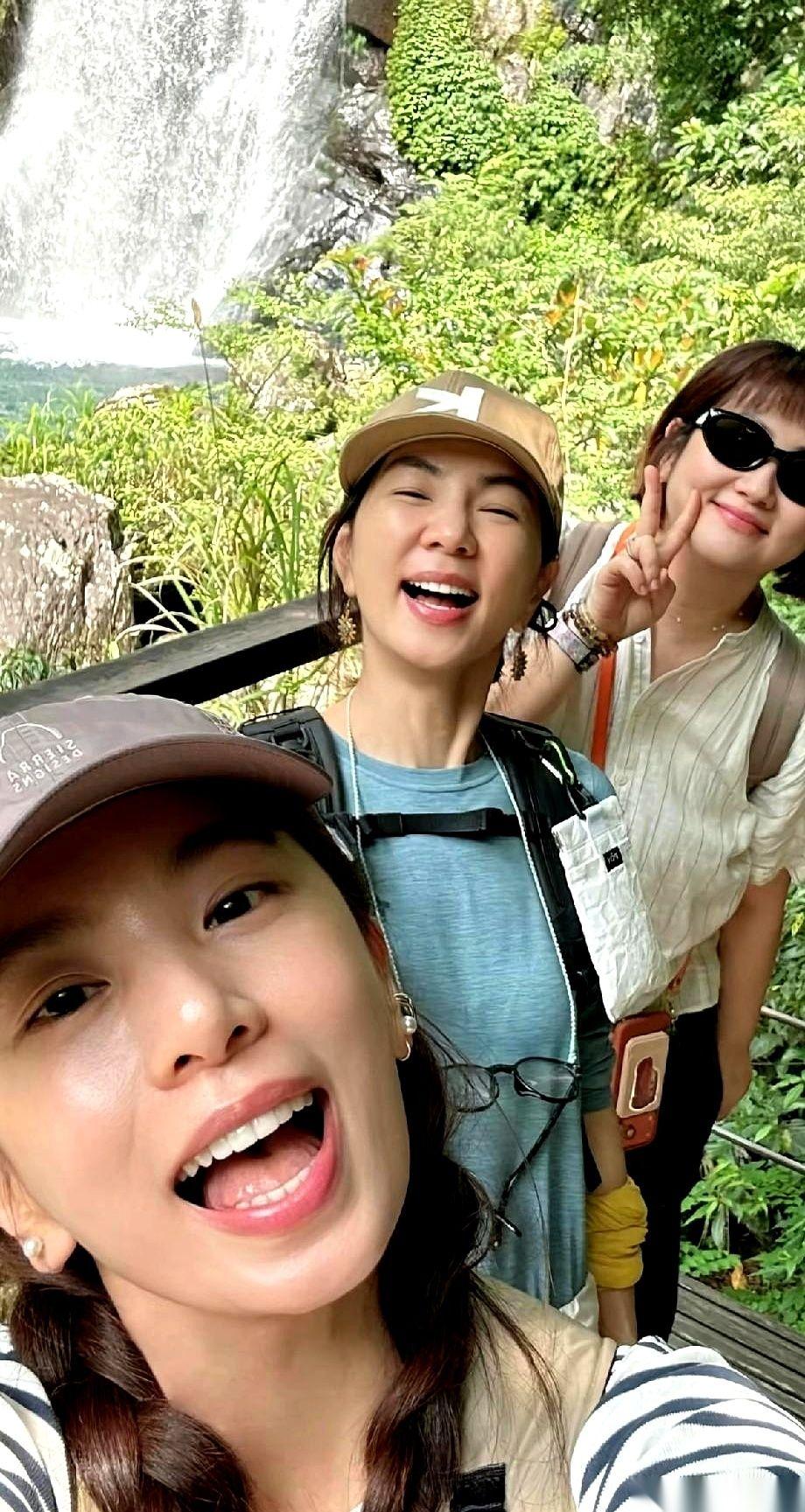 S.H.E又合体了。 但这次,没打一通电话给经纪人,没拉一个助理,三个人自己背上包,素面朝天就钻进了山里。 镜头里,田馥甄的双麻花辫甩来甩去,她像个小导游,在前面指路。陈嘉桦蹲在木栈道上,对着手机特效做鬼脸,背包里还揣着几个包子,说爬累了垫一下。任家萱跟在后面,戴着墨镜,风吹起她的头发,她只是安静地笑。 没有闪光灯,没有尖叫声,只有瀑布的水声和她们三个有一搭没一搭的聊天声。 走到一半,陈嘉桦从包里掏出那个被挤得有点变形的包子,递过去,另外两个人笑得前仰后合,说“冷了也好吃”。这个动作,这个语气,跟二十多年前在宿舍里分一碗泡面,没有任何区别。 她们就那么并排站在瀑布前,水汽扑在脸上,有些凉,三个人谁也没说话,就只是站着,然后默契地拿出手机拍了张照。没有预告,没有营销,这张照片就这么直接砸了出来。 什么叫最好的关系? 大概就是,我们各自在自己的世界里乘风破浪,但只要你需要,我随时可以为你爬一座山。