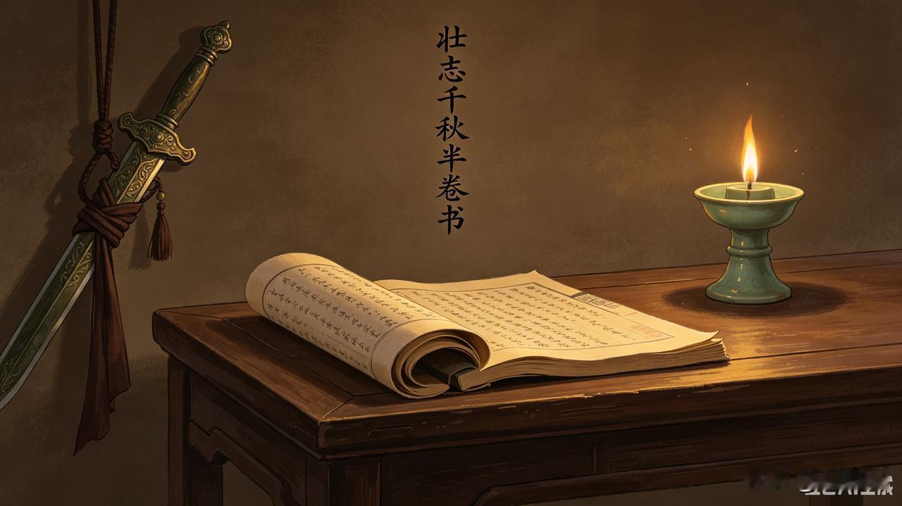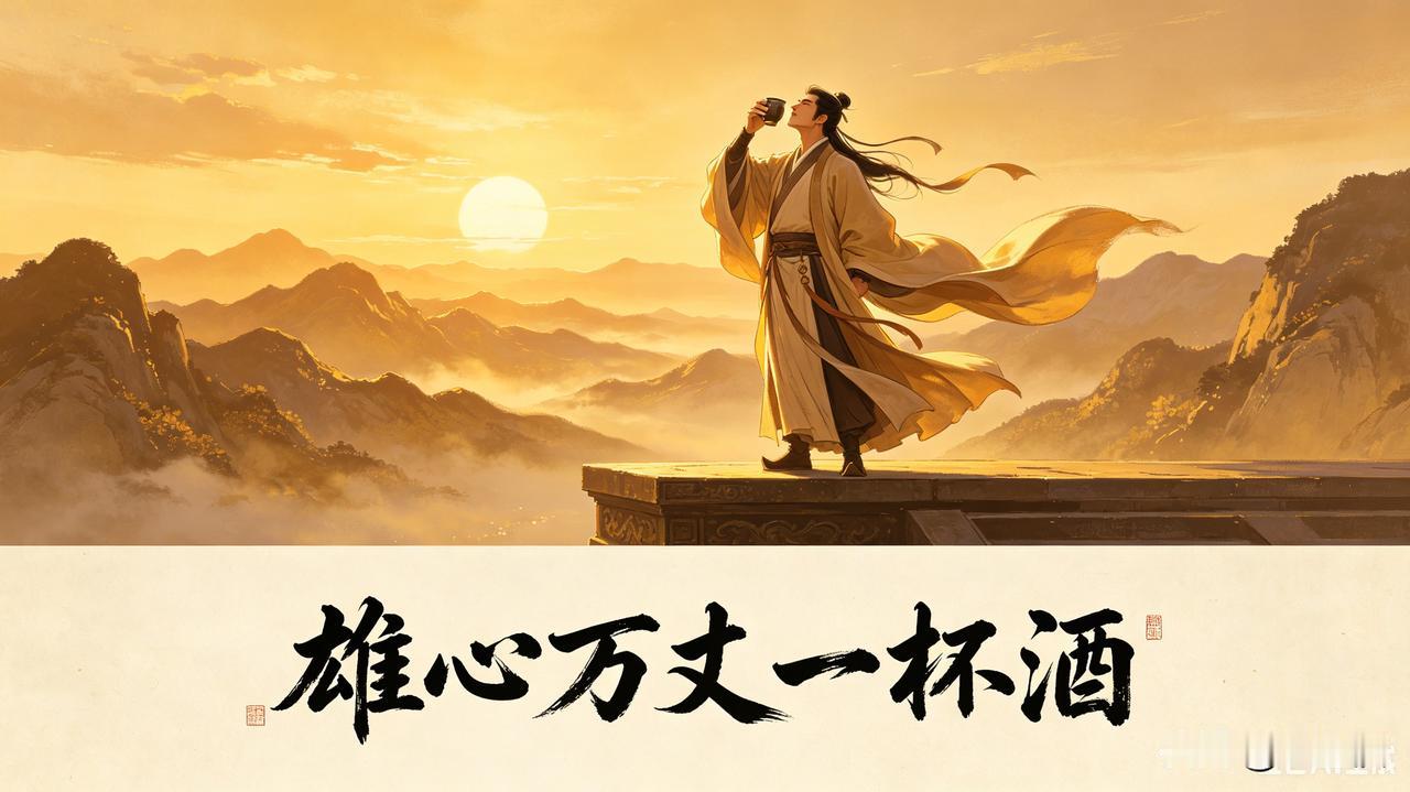 上联:雄心万丈一杯酒|A boundless ambition in one cup of wine 下联:壮志千秋半卷书|An eternal aspiration in half a scroll