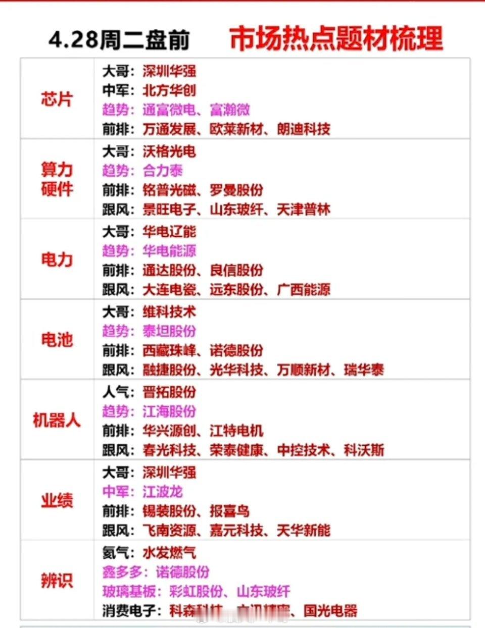 4.28周二 市场热点方向+投资逻辑!
