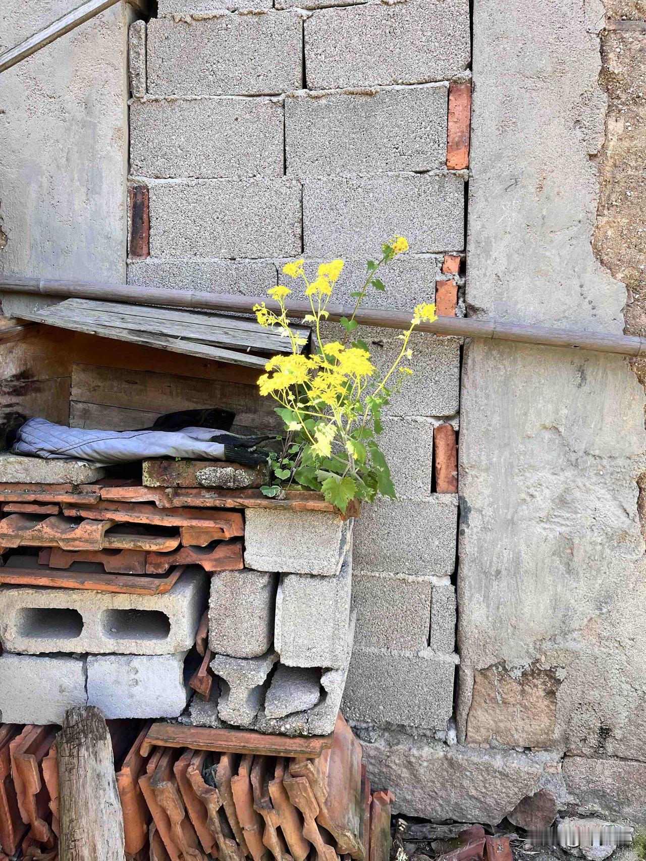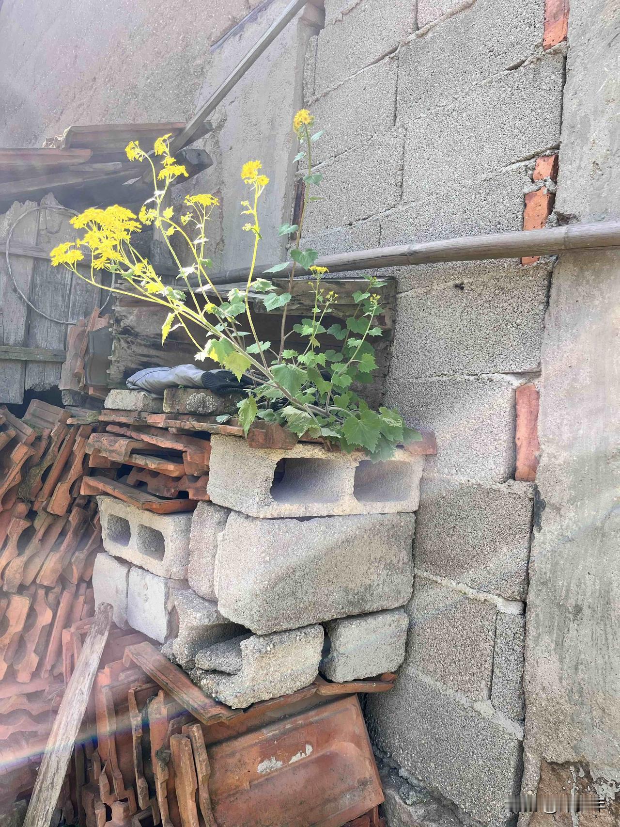 这花的生命力太强了,长再没有泥土的墙上,还开的这么旺盛漂亮!