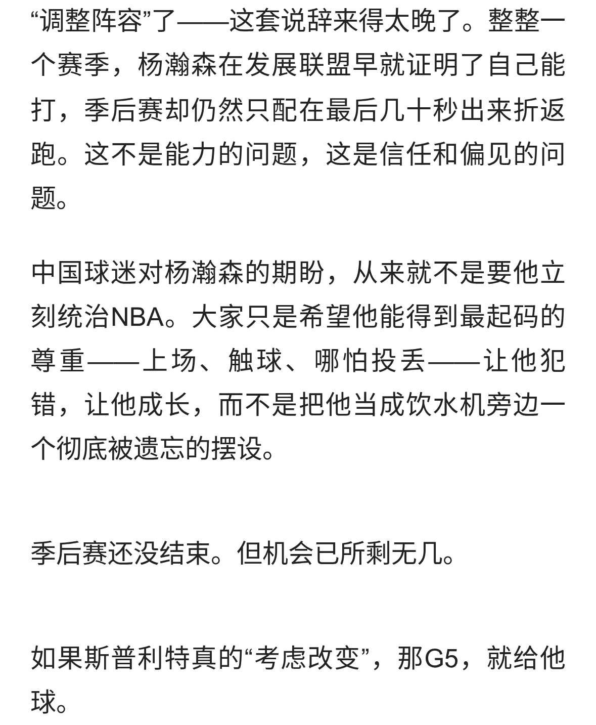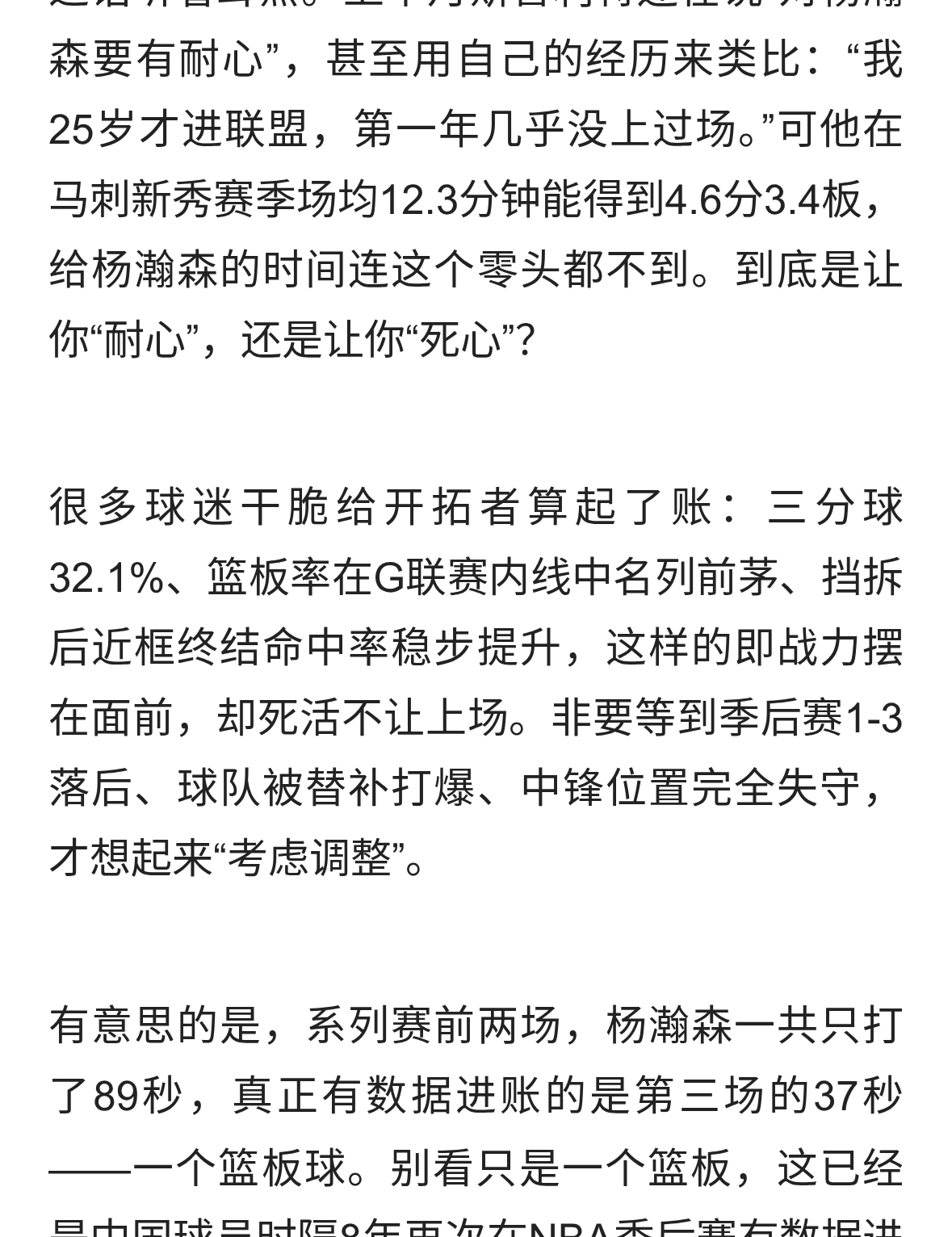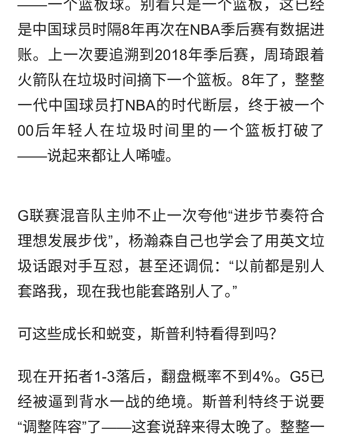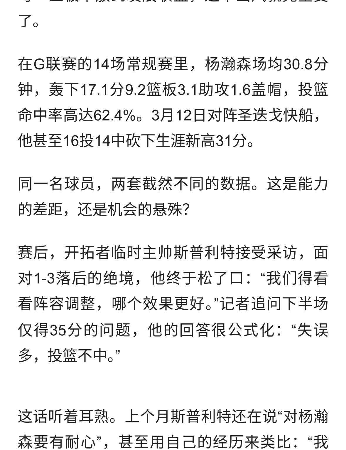 落后19分杨瀚森上场,斯普利特:考虑变阵