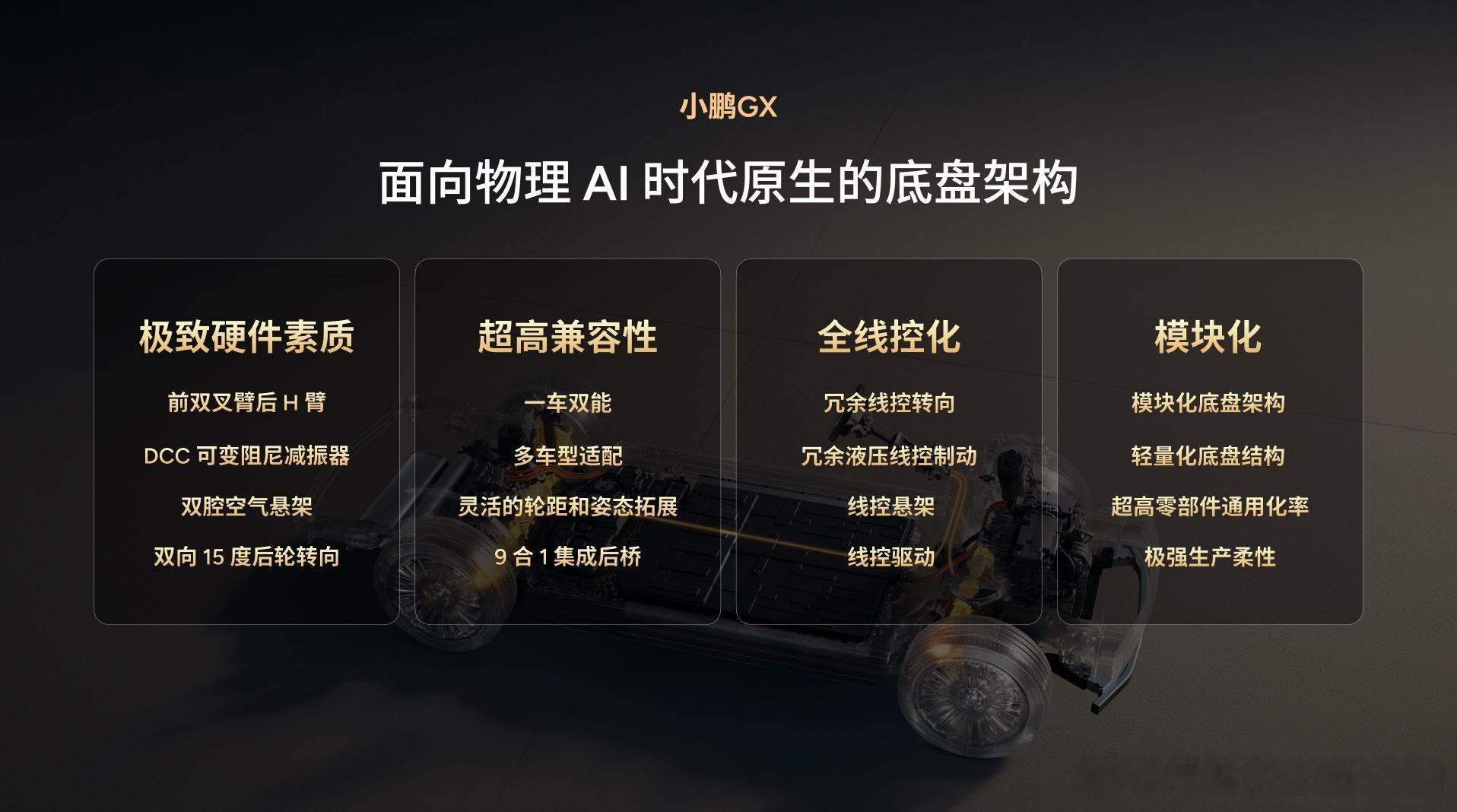 小鹏GX全球首发下一代原生线控底盘 恰好周末深度研究了下这个事情,简单讲几句好了:线控实际上是一个技术含量很高的存在,而且场景非常友好。它的整个技术架构在硬件、软件空间、安全冗余和细节调教上都非常讲究,我知道早些年它已经出现在了一些产品上,但那时候的线控,并非针对“智驾”这个场景而存在,在策略上、场景的开发商,软件安全上都不够好。