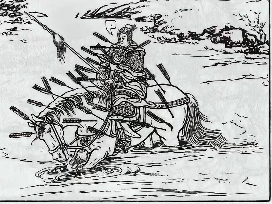 这位骑士骑马过河,背上插满箭。考一考你的历史,这是哪位人物被乱箭射死在什么河里。