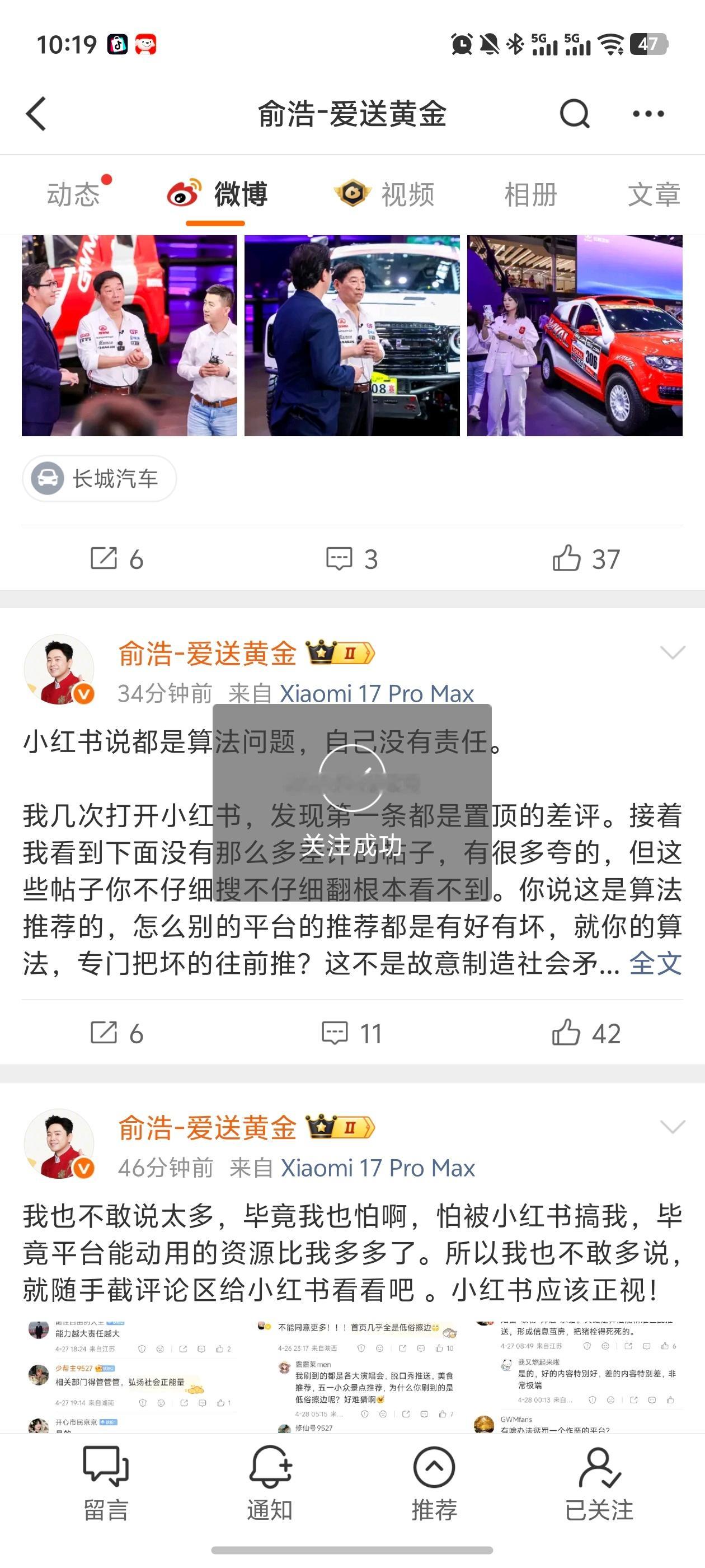 俞浩要小红书公开算法路转粉,这种被点名过的平台还是如此肆意妄为,终于有人出来说话了