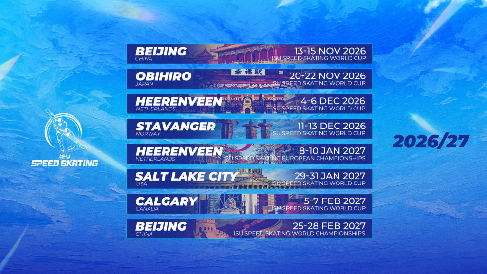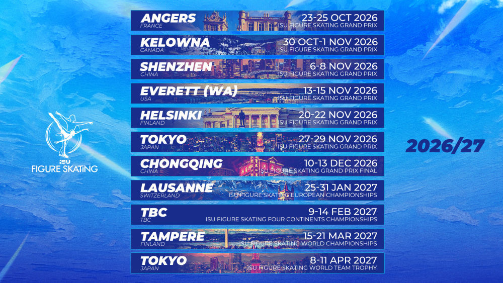 国际滑联公布2026-2027赛季赛历,花样滑冰、速度滑冰、短道速滑多项国际赛事将在中国举行