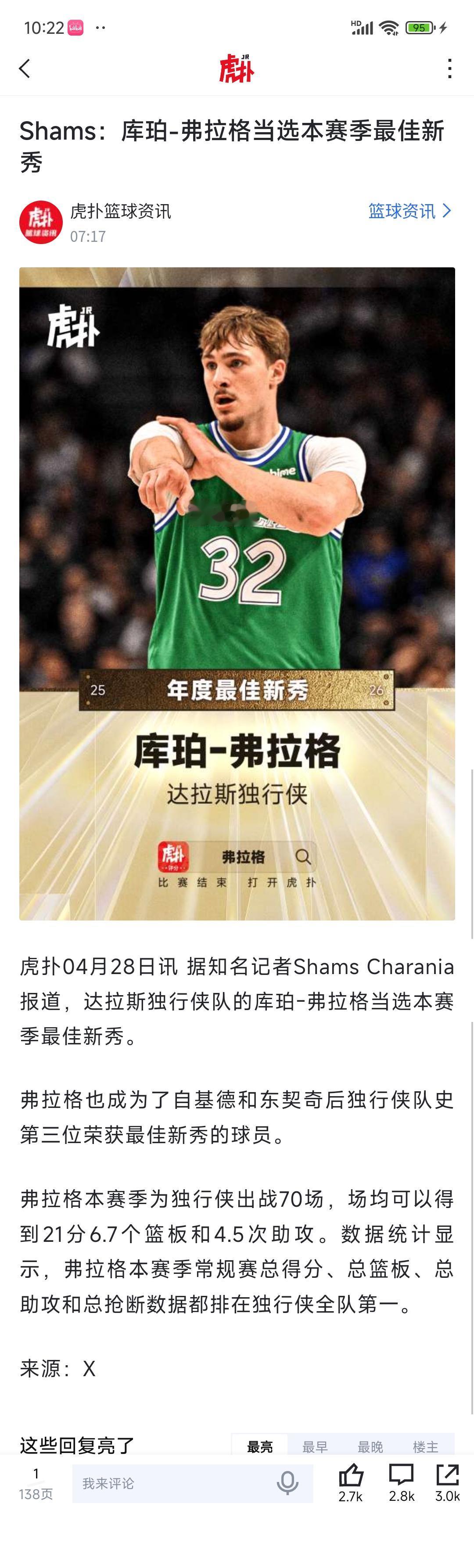 弗拉格当选最佳新秀,说明联盟更看重天赋。 当年安东尼第一个赛季,比詹姆斯好一点,结果联盟选择天赋更强的詹姆斯,后来看到了安东尼只有新秀赛季能跟老詹比。 这次联盟没给克尼佩尔,很正常。[大金牙]