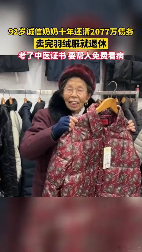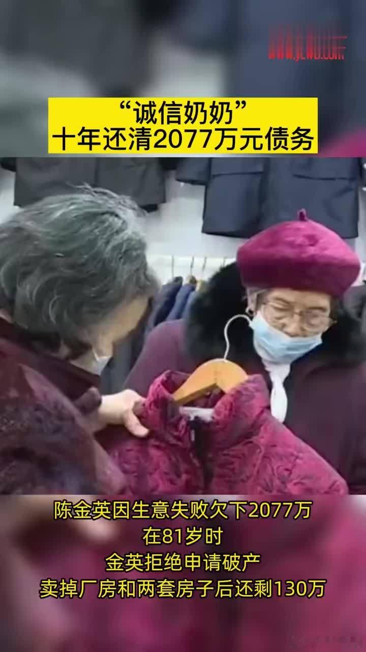 96岁奶奶回应10年还清2077万债96岁奶奶回应10年还清2077万债!陈金英53岁创业82岁破产欠债2077万,拒绝申请破产坚持街头卖羽绒服还债!她说"做人,背可以驼,腰不能弯!"这才是真正的诚信精神!从负债累累到一身清白,从白发苍苍到无债一身轻!有人欠钱跑路有人砸锅卖铁还债,诚信奶奶的选择值得所有人深思!她的故事告诉我们:诚信是金,担当是魂,年纪大了也要把腰杆挺直!这才是中国精神,这才是真正的正能量!你觉得诚信奶奶的故事有多震撼?评论区聊聊诚信的重要性!