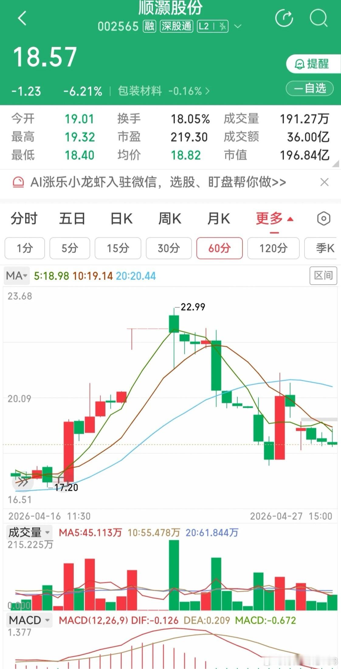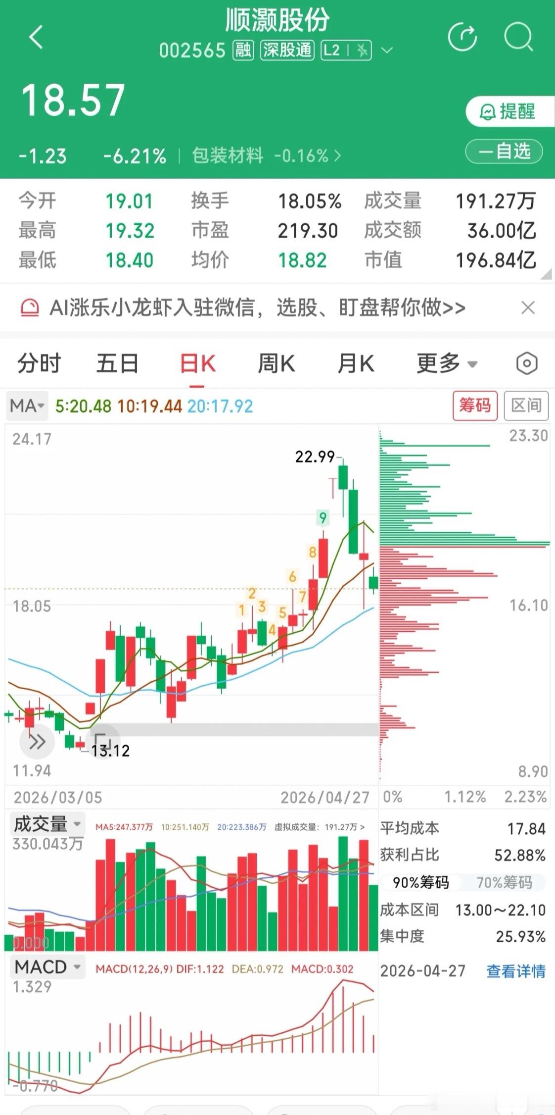 深度解析:顺灏股份太空算力,是黄金机遇还是概念博弈?前天太空算力新闻联播也进行了专题报道!伴随AI算力需求持续扩容,传统地面算力在能耗、散热、运行成本上的短板日益凸显,太空算力作为产业前沿延伸方向,逐渐成为资金重点布局的新兴赛道。顺灏股份提前切入该领域,也让市场产生分歧:是价值卡位,还是题材炒作。一、核心机遇:赛道优质,布局具备稀缺价值从行业逻辑来看,太空算力依托轨道能源优势与太空低温环境,有效弥补地面算力短板,契合高端算力长期发展趋势,赛道成长想象空间充足。从公司层面看,顺灏并非简单蹭热点,通过股权投资深度绑定太空算力核心项目,是A股少数拥有实质布局的相关标的,概念稀缺性突出。叠加后续卫星试验、在轨测试等明确事件催化,具备持续的题材溢价基础。同时,公司传统包装主业经营稳定,现金流扎实,能够对冲题材板块的波动风险,相比纯炒作标的,基本面韧性更强。二、潜在隐忧:落地偏慢客观来讲,现阶段太空算力整体仍处于早期研发验证周期,技术成熟度不足,商业化落地周期漫长,短期内无法为企业贡献实际业绩,基本面支撑较弱。其次,本次跨界布局以财务投资为主,公司原有业务与航天算力产业完全割裂,无技术、产业链协同,对项目运营缺乏主导能力,后续进展存在较大不确定性。结合盘面来看,资金更多基于预期进行炒作,股价脱离主业估值体系,高度依赖题材情绪。一旦风口退潮或项目进展不及预期,估值回归压力会显著加大。三、技术分析前面横盘突破后起来高度三板不到,又快速回调 4 天,昨天又破了 10 日线,今天如果能重新站稳 10 日线,短线博弈机会还是有空间,短线机会如果再消极一点,从 60 分钟线看应该很难再下破前面大阳线的最低价 18 ,总之风险与机会并存吧特别提醒!以上内容为个人复盘整理笔记,不构成任何投资建议!