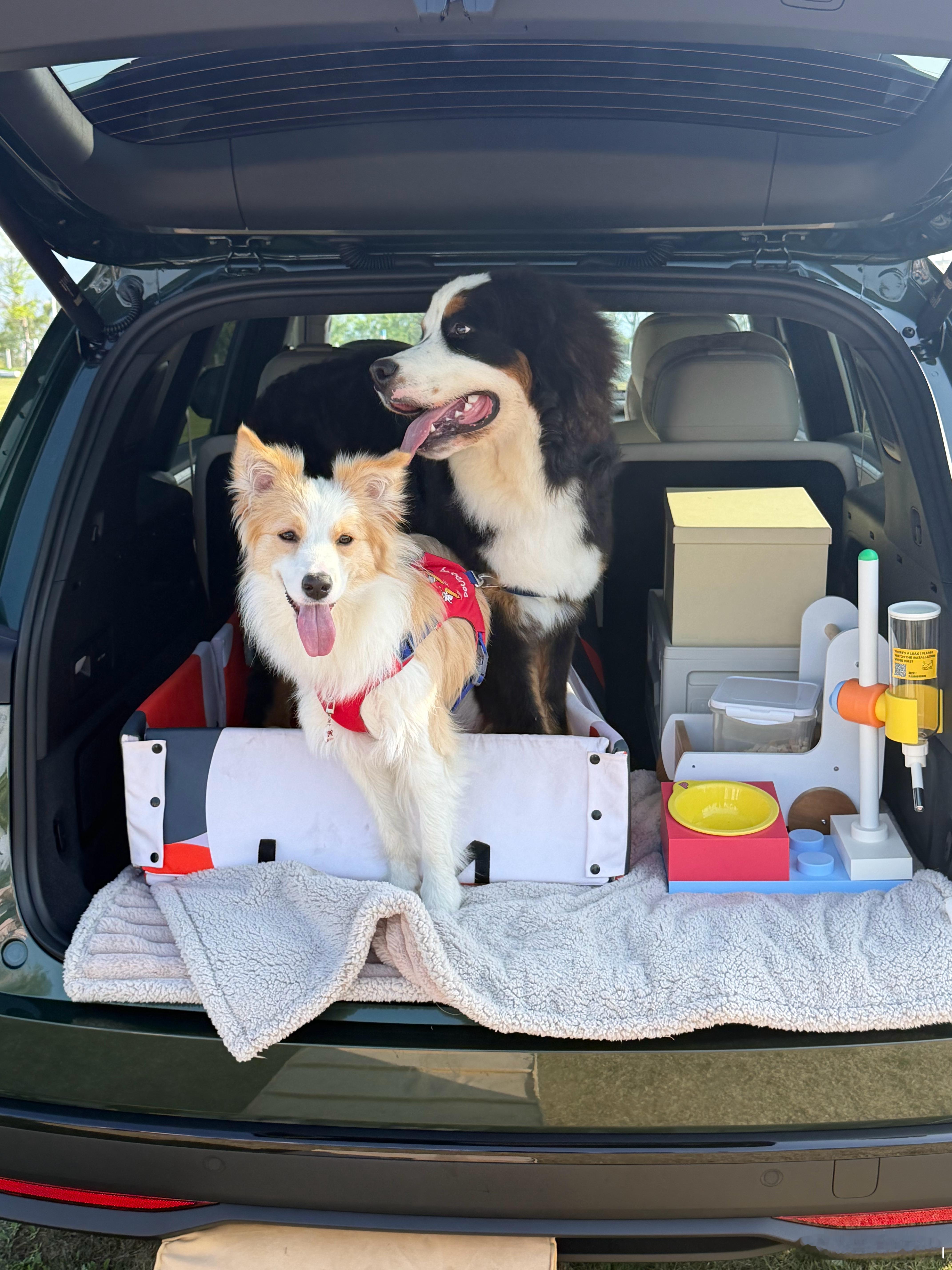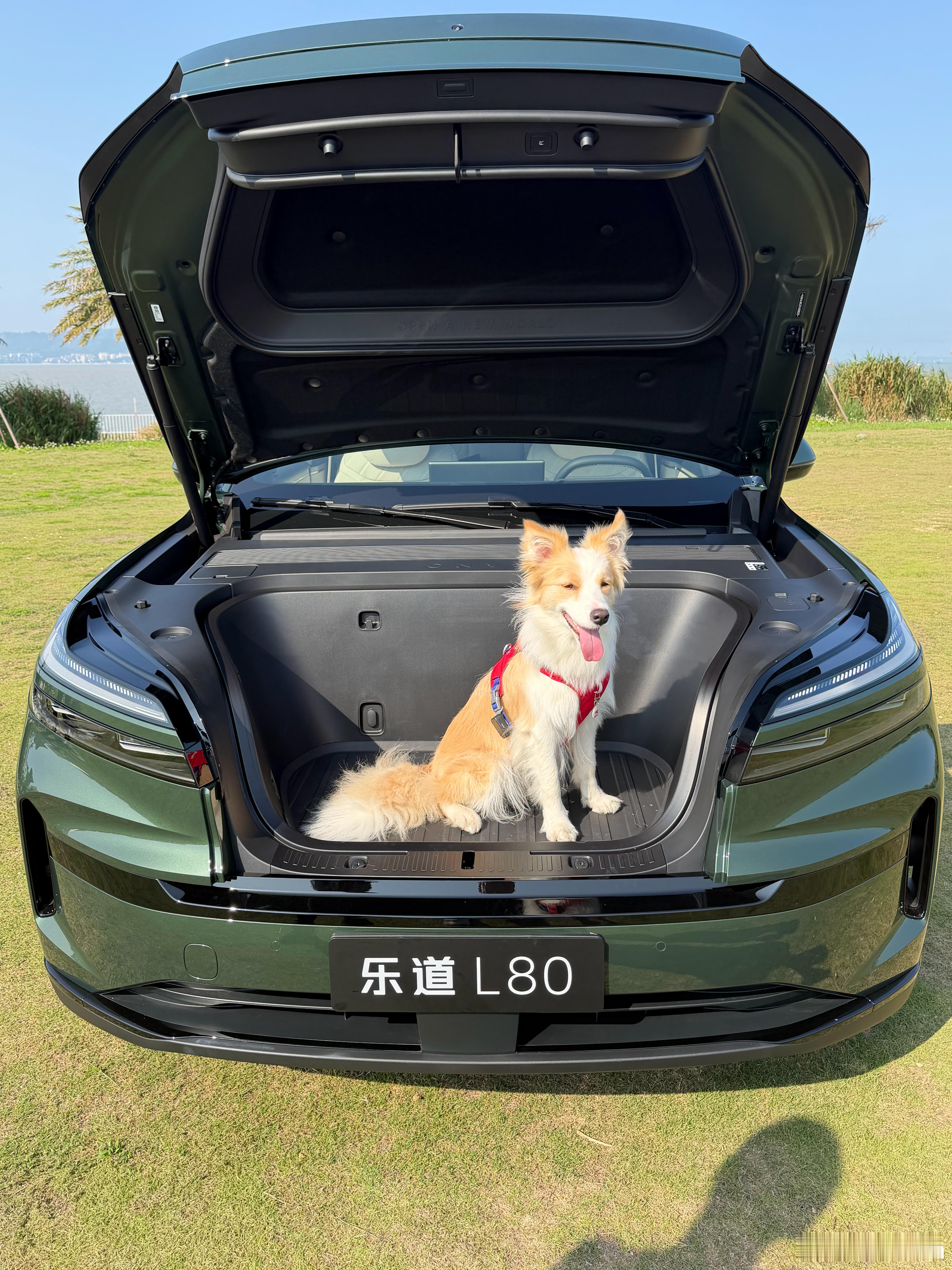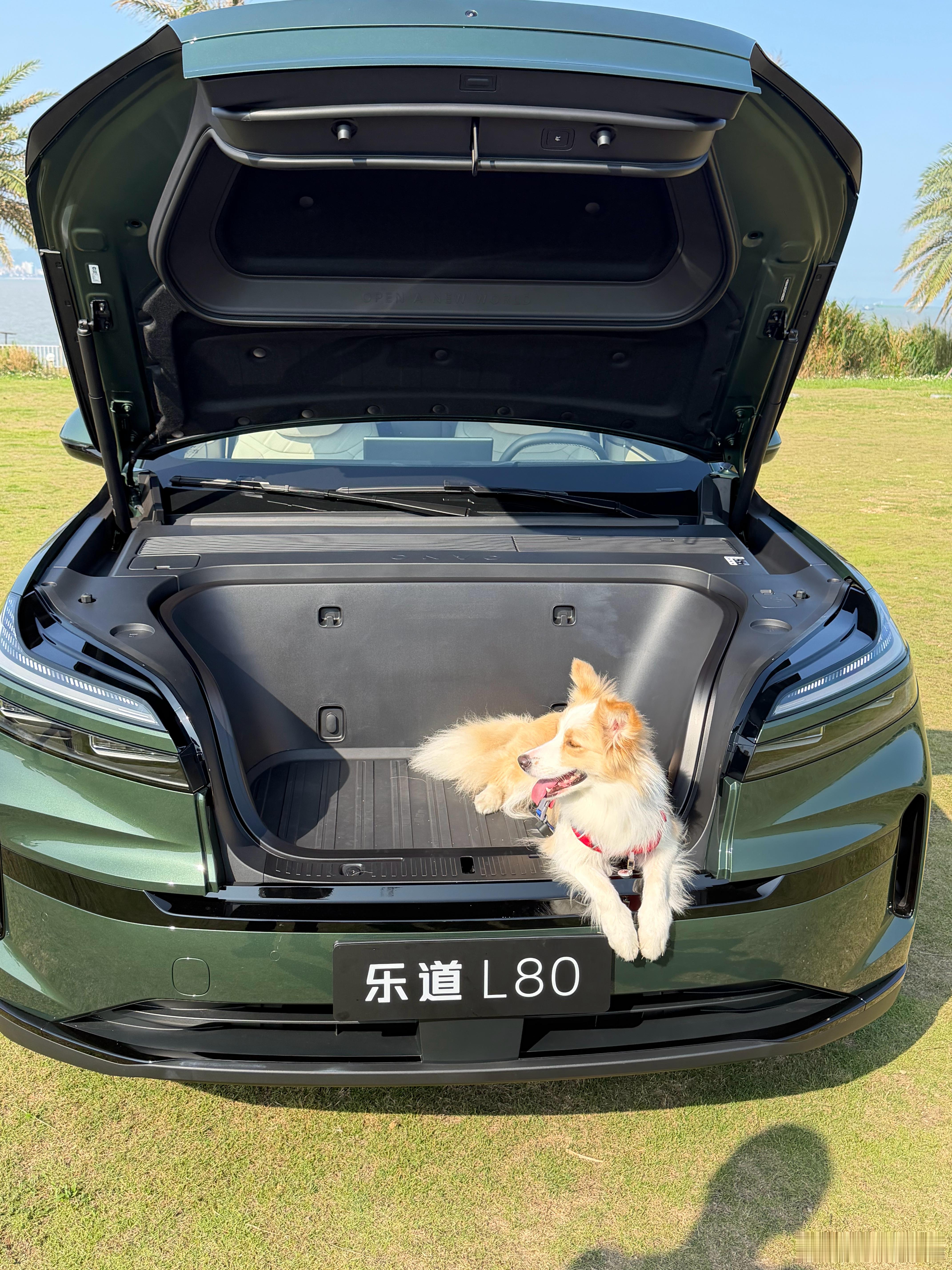 乐道L80前后备厢空间很大,甚至他们已经不叫后备箱而叫做后备舱了。二排座椅放倒之后,2600升的后备舱 ,再加上240升前备舱。应该是目前空间最大的双舱空间结构了。对于爱宠人士来说,车上放得下一整个汪汪队开大会了。
