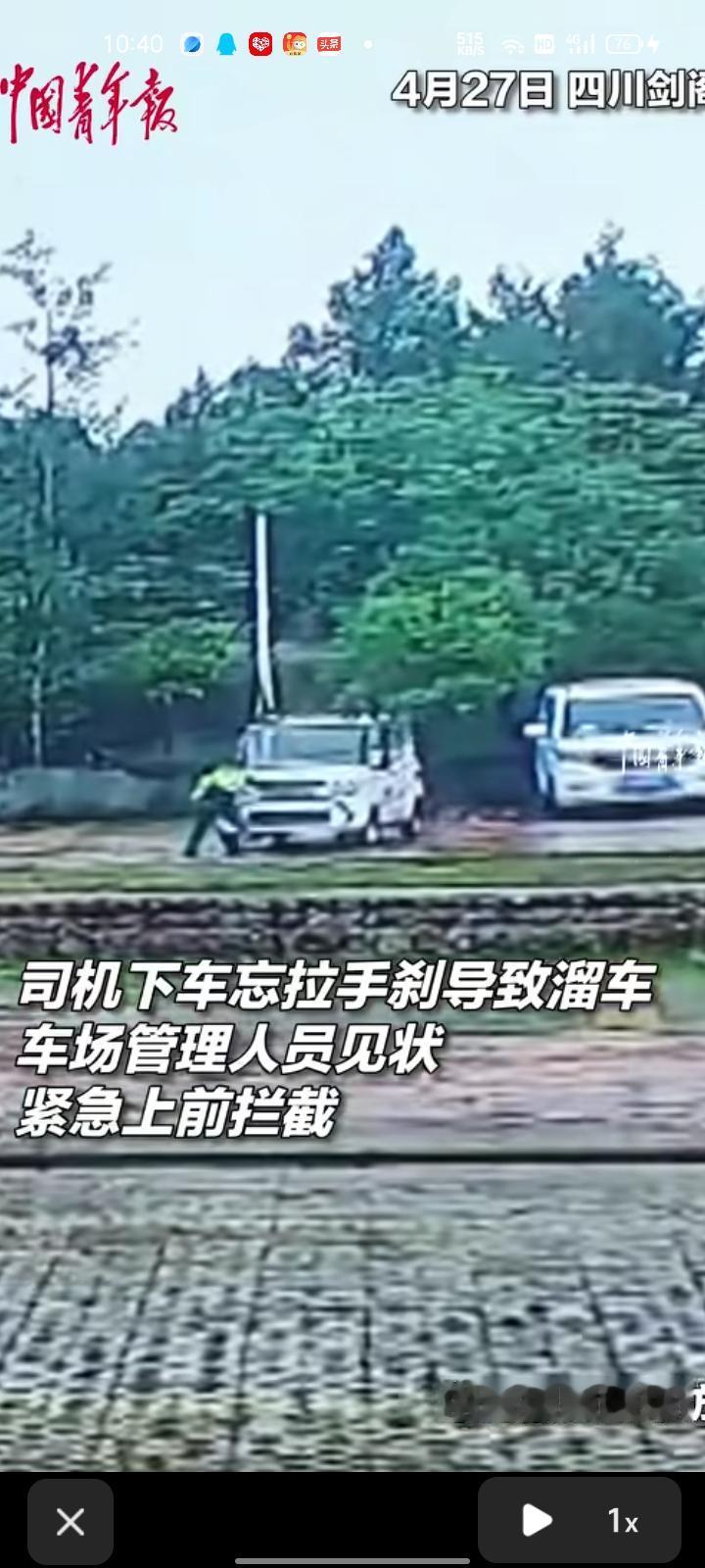 4月27日,广元市剑阁县。监控记录下停车场的惊险一幕,司机忘拉手刹导致溜车,工作人员不顾个人安危,飞奔用肉身挡车,但因车辆惯性太大挡不住。好在车主和附近游客过来帮忙,及时化解险情。未造成人员伤亡和周边设施损坏。 最后提醒大家,停车拉手刹,安全系万家。溜车一瞬间,后悔一辈子。