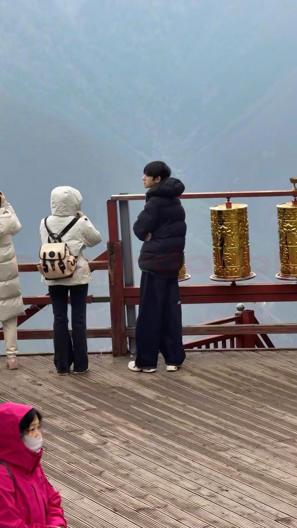 梅里雪山偶遇陈浚铭 谁懂!梅里雪山偶遇!一身黑羽绒服站在雪山观景台,身形挺拔少年感拉满,清冷氛围感直接封神!远远看过去就是高挑大帅哥既视感✨ cr.超级加倍